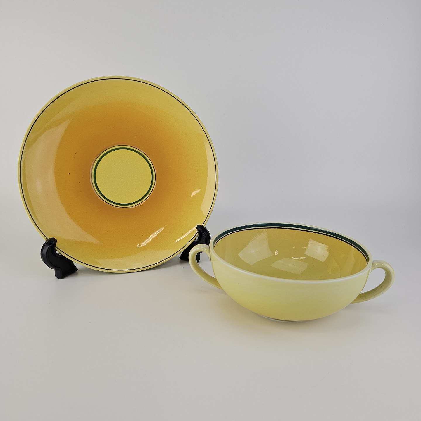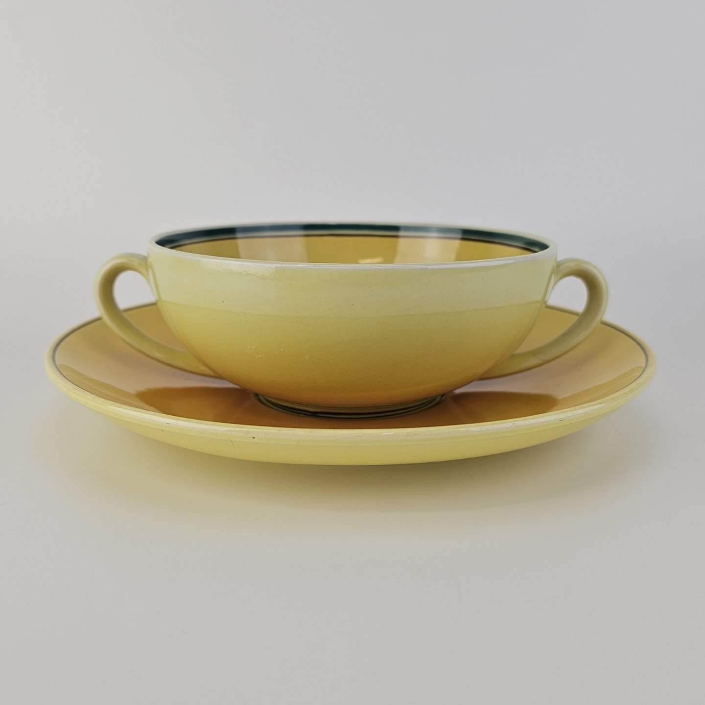 Bouillonkop med underkop i fajance fra stellet Gertrud fremstillet i perioden 1933-1939.
