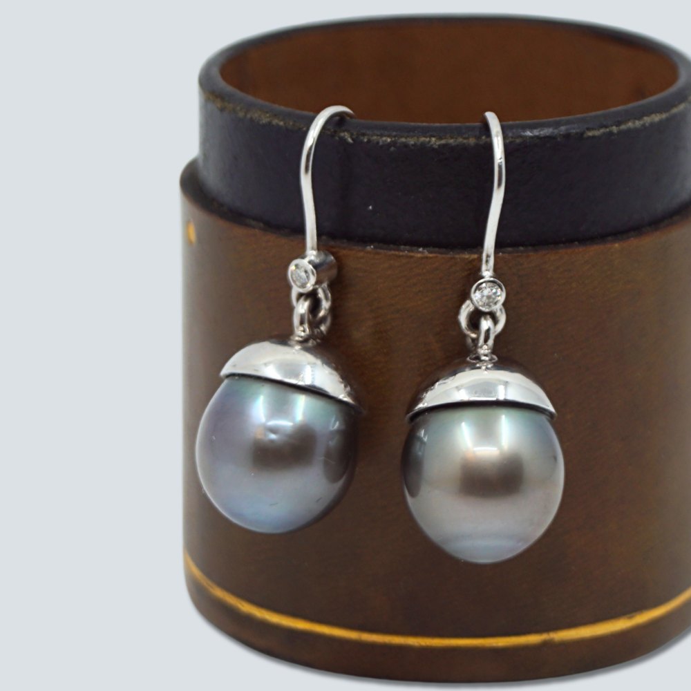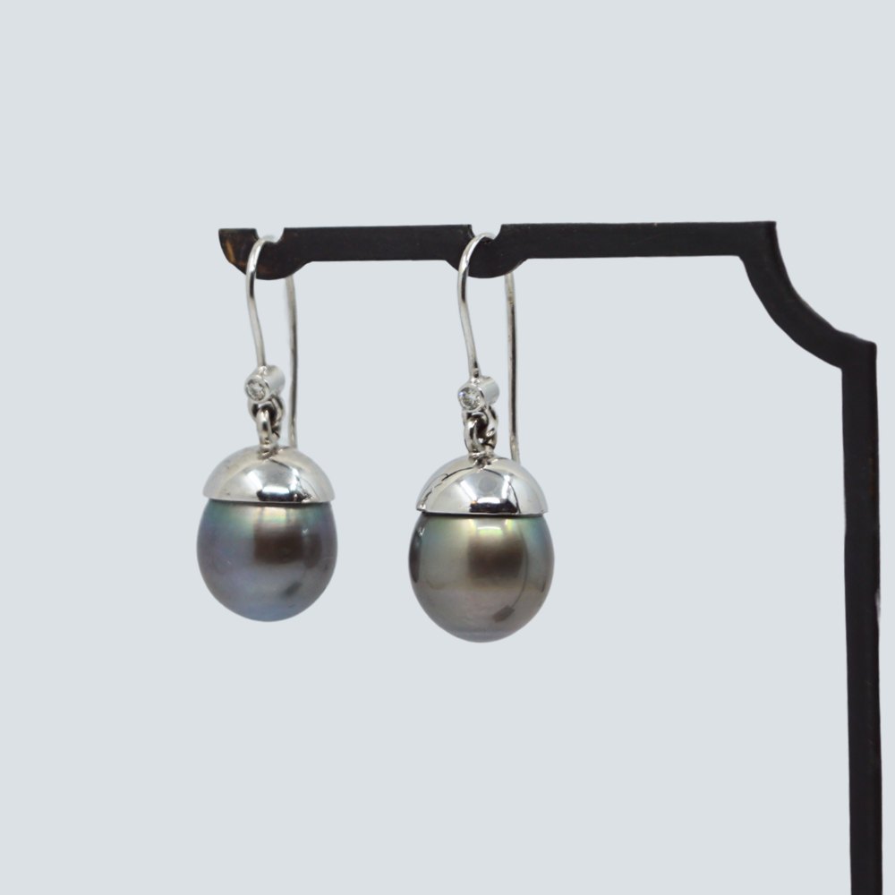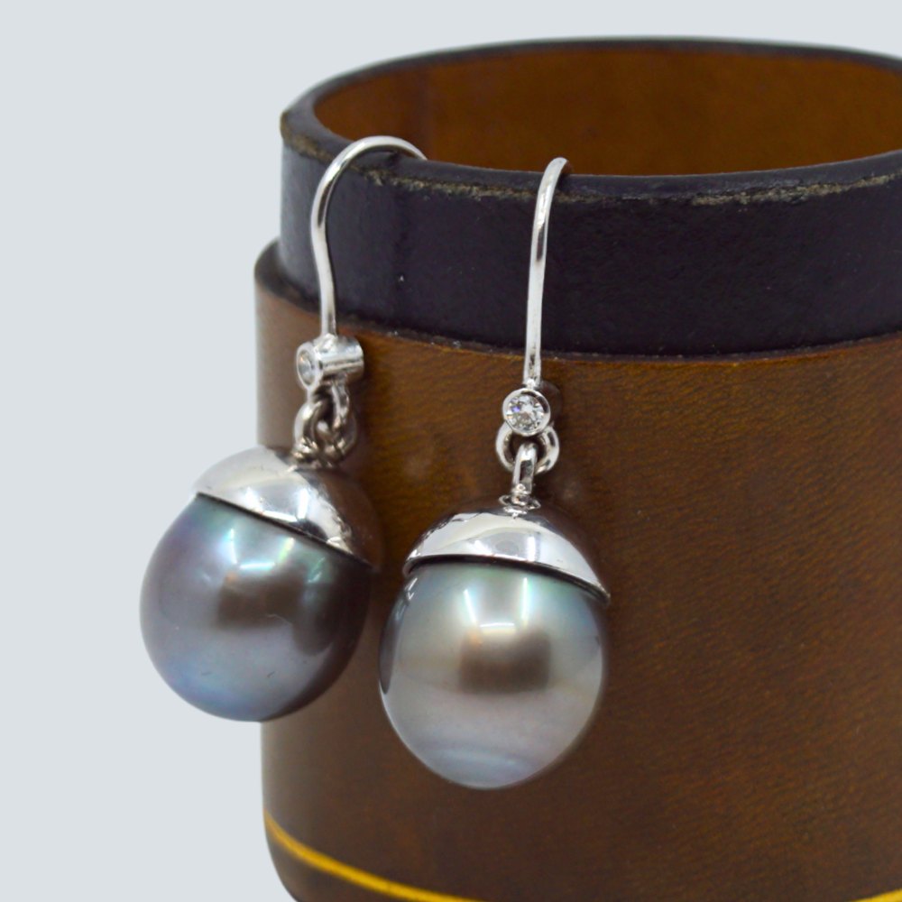 Perleøreringe i 14 kt. hvidguld m. Tahiti perle og diamant