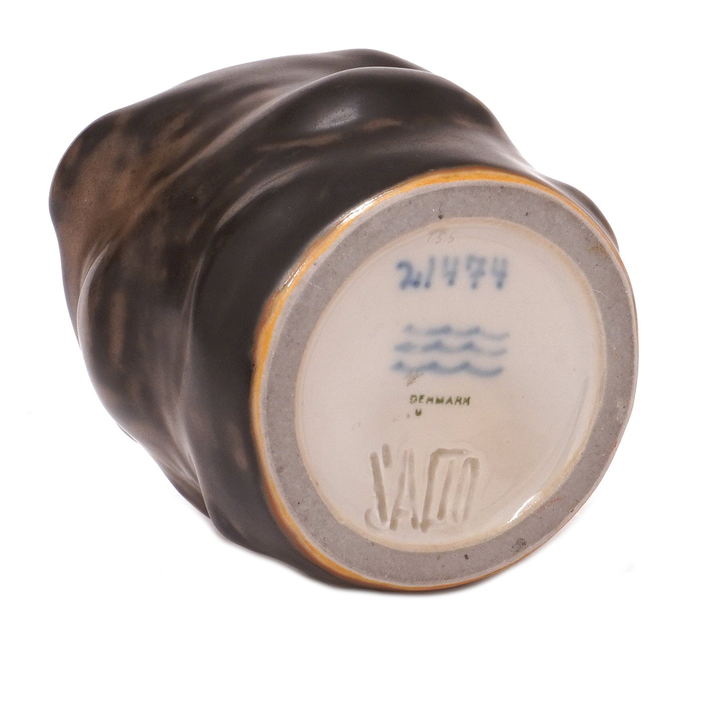 Salto vase. Axel Salto for Royal Copenhagen stentøjsvase i med bjørneglasur 21474. Signeret Salto. H: 8,5cm