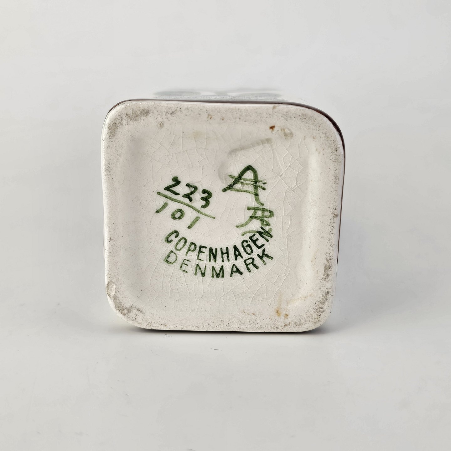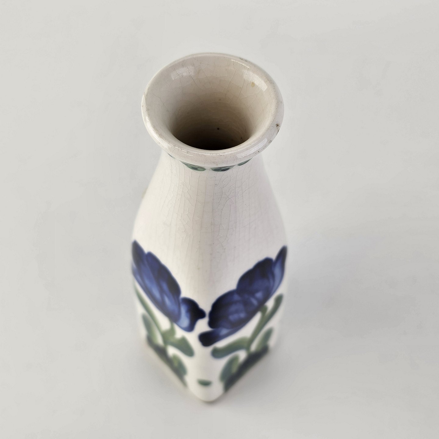 Vase i hvid fajance dekoreret med håndmalede blå violer