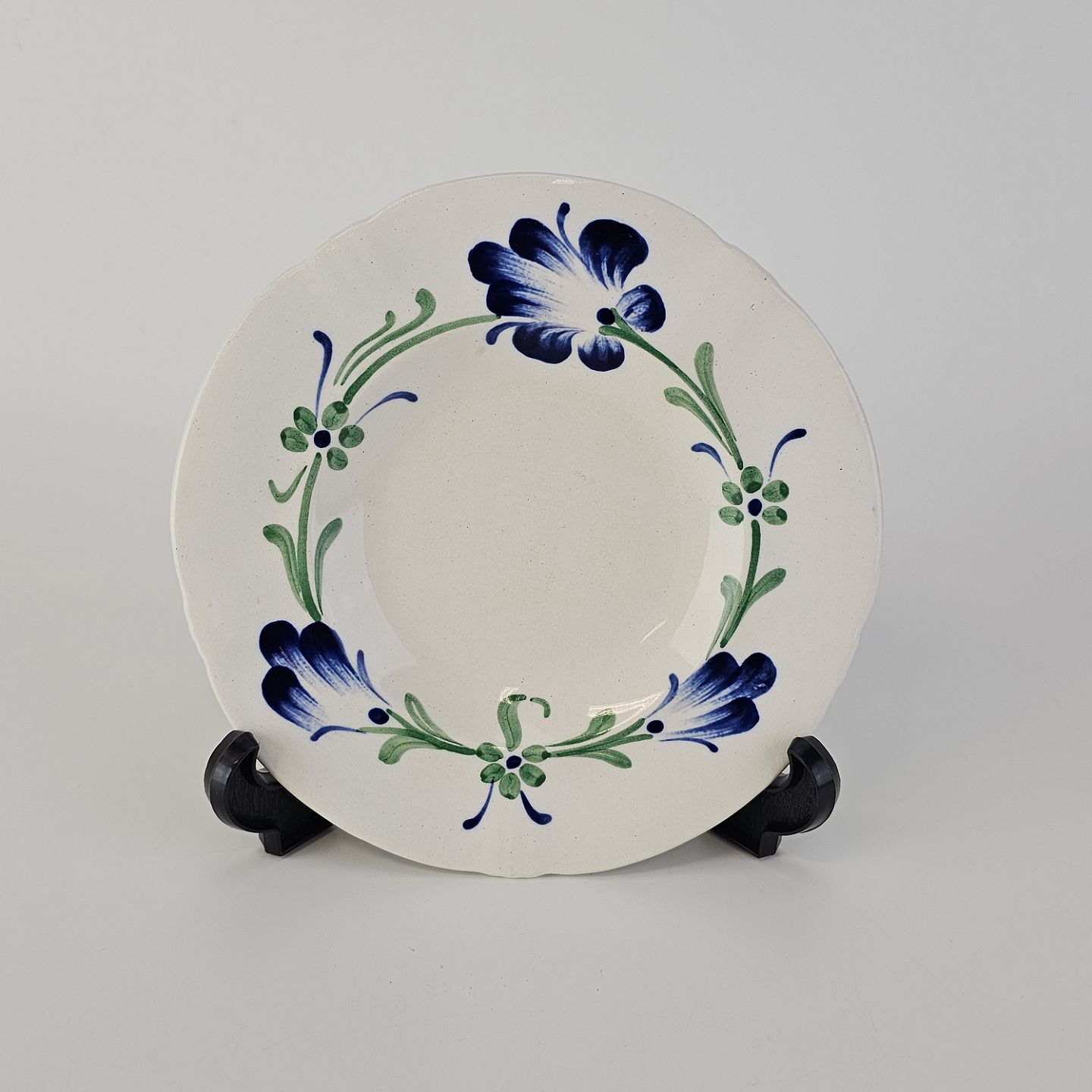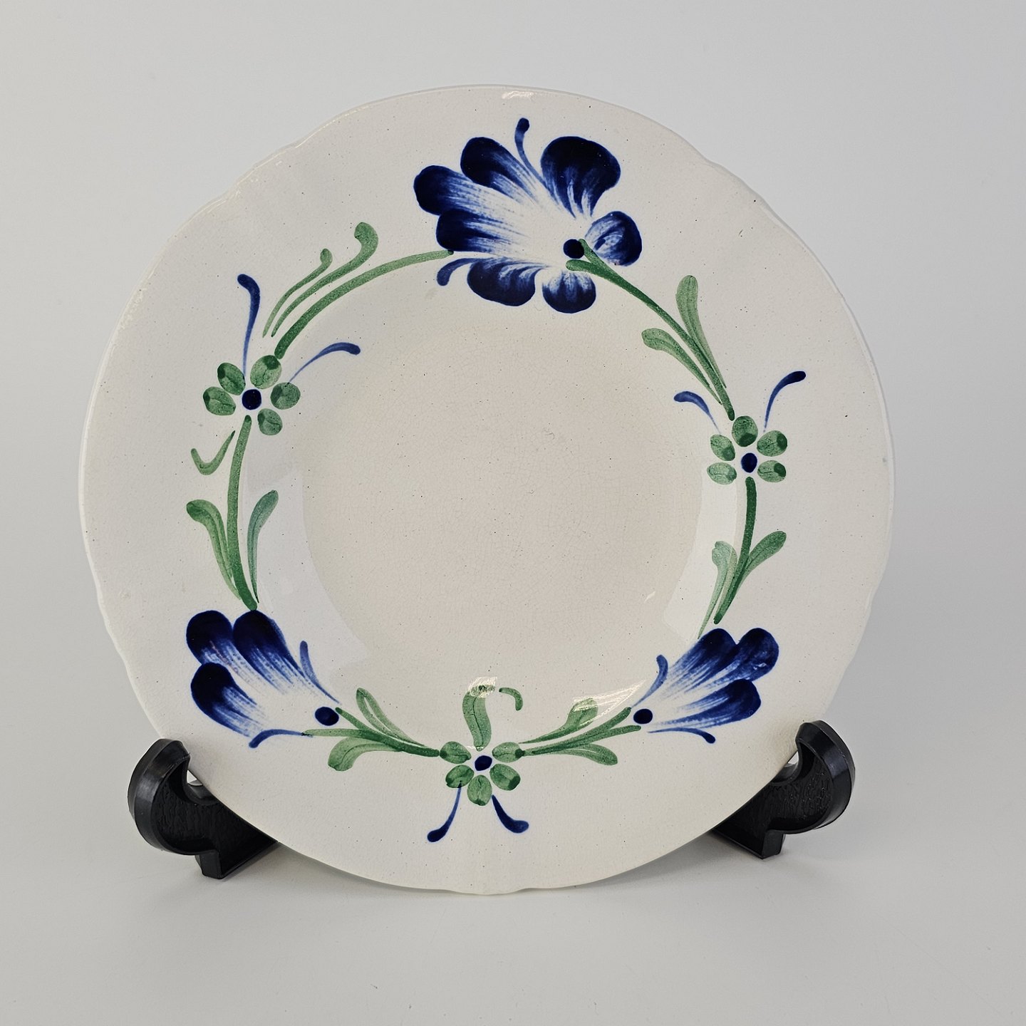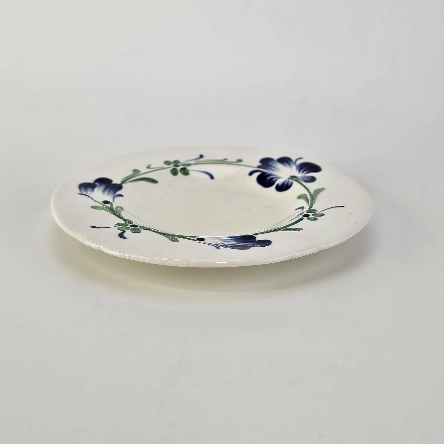 Flad kagetallerken i hvid fajance fra stellet Blå Cenerarier