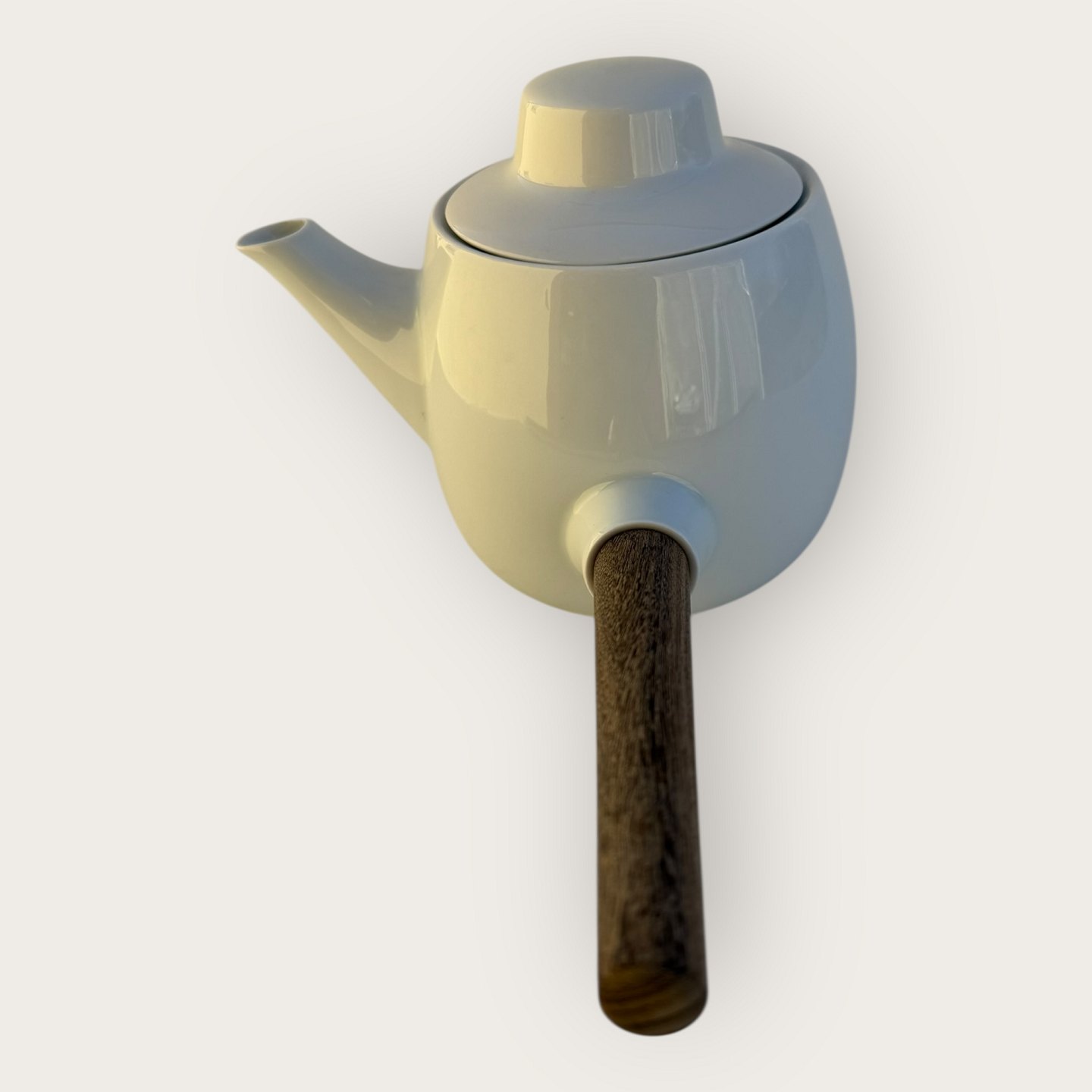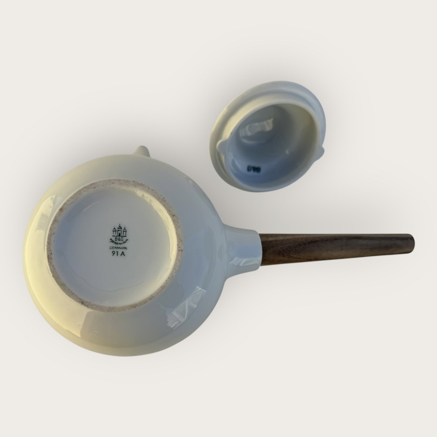 Bing & Grøndahl, Hvid Koppel, Tekande med håndtag i teak fra 1960'erne, Mål ca. 18x28cm, Design Henning Koppel *fin stand*