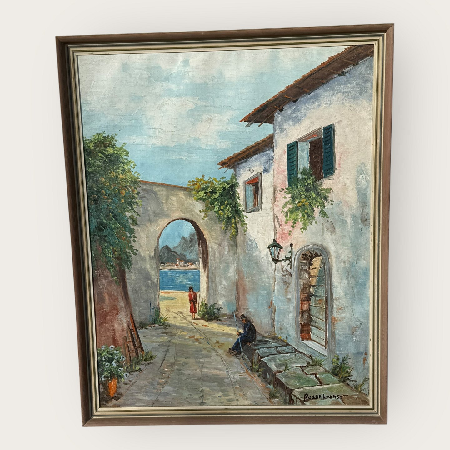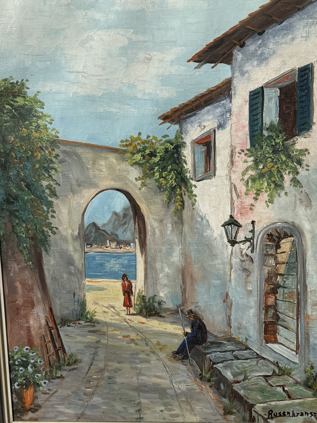 Rosenkrans, olimaleri på lærred, Sydlandsk motiv, Mål med ramme 88x71cm