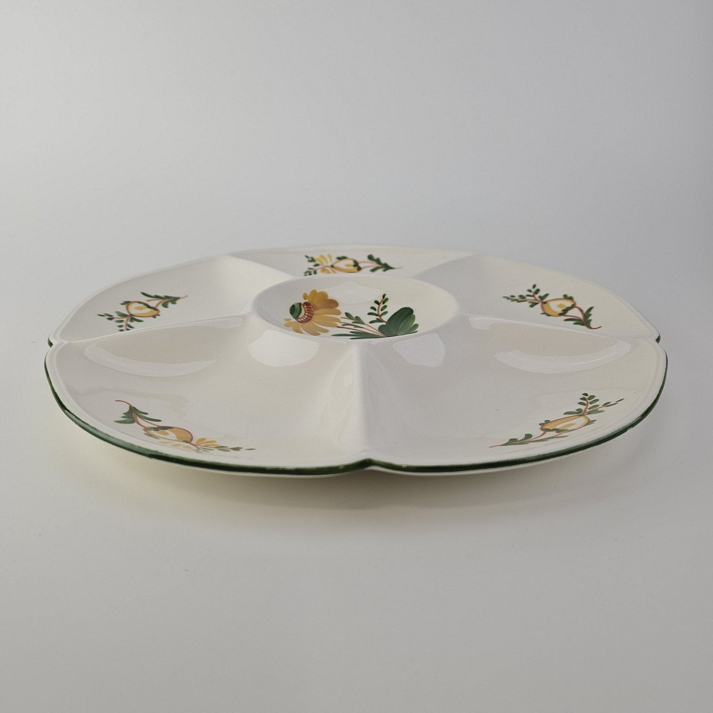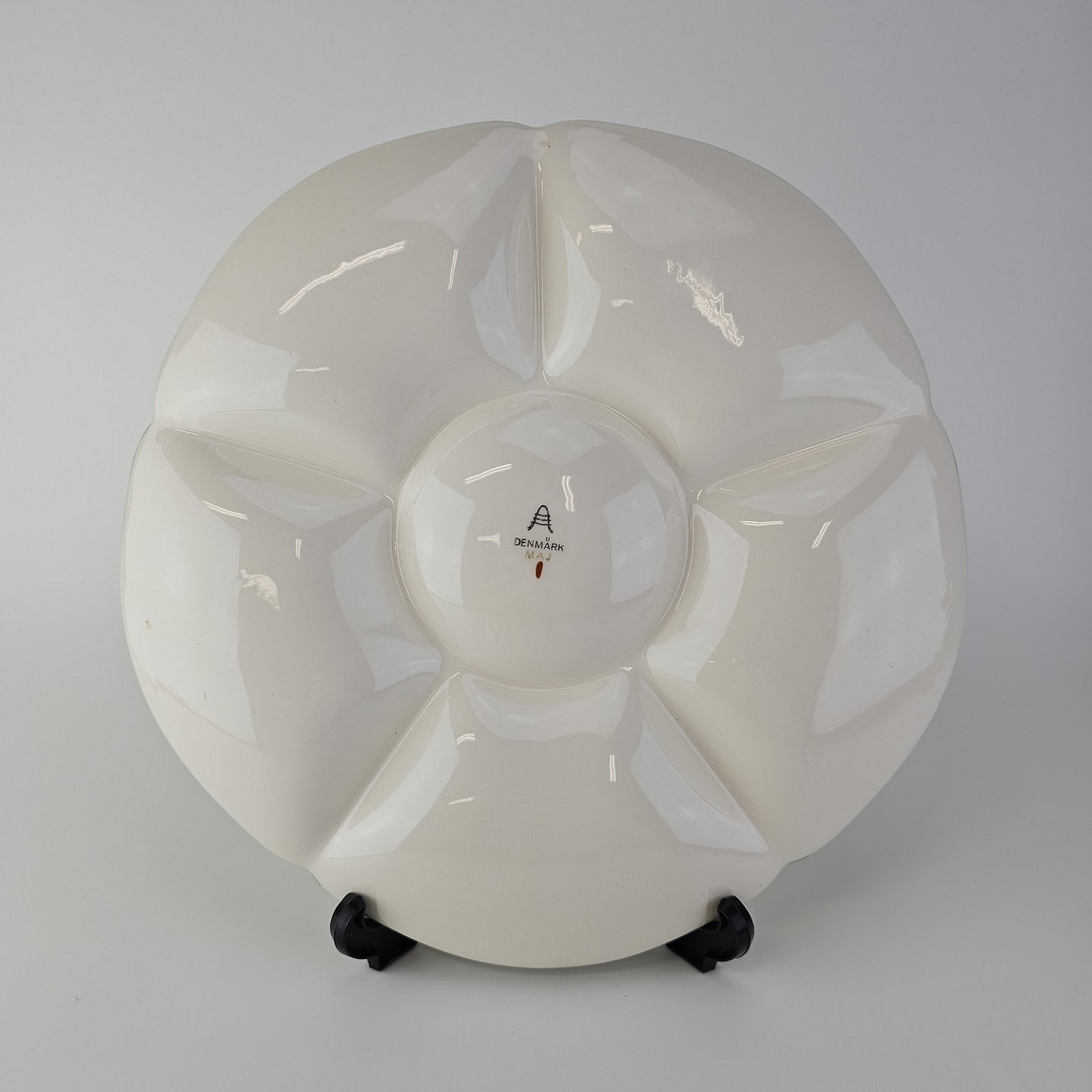 Rundt fad i fajance fra stellet Maj fremstillet i perioden 1941-1966.