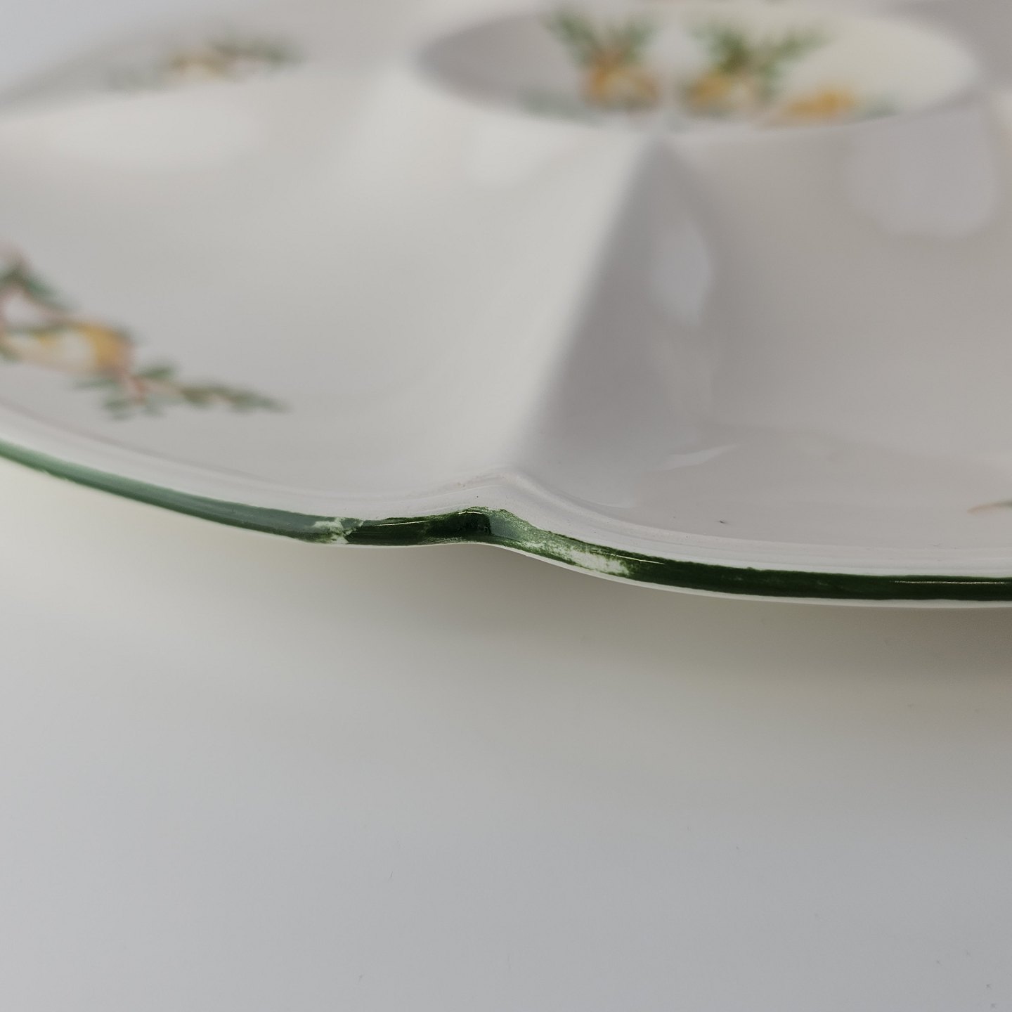 Fremstår med slid på dekorationen på kanten