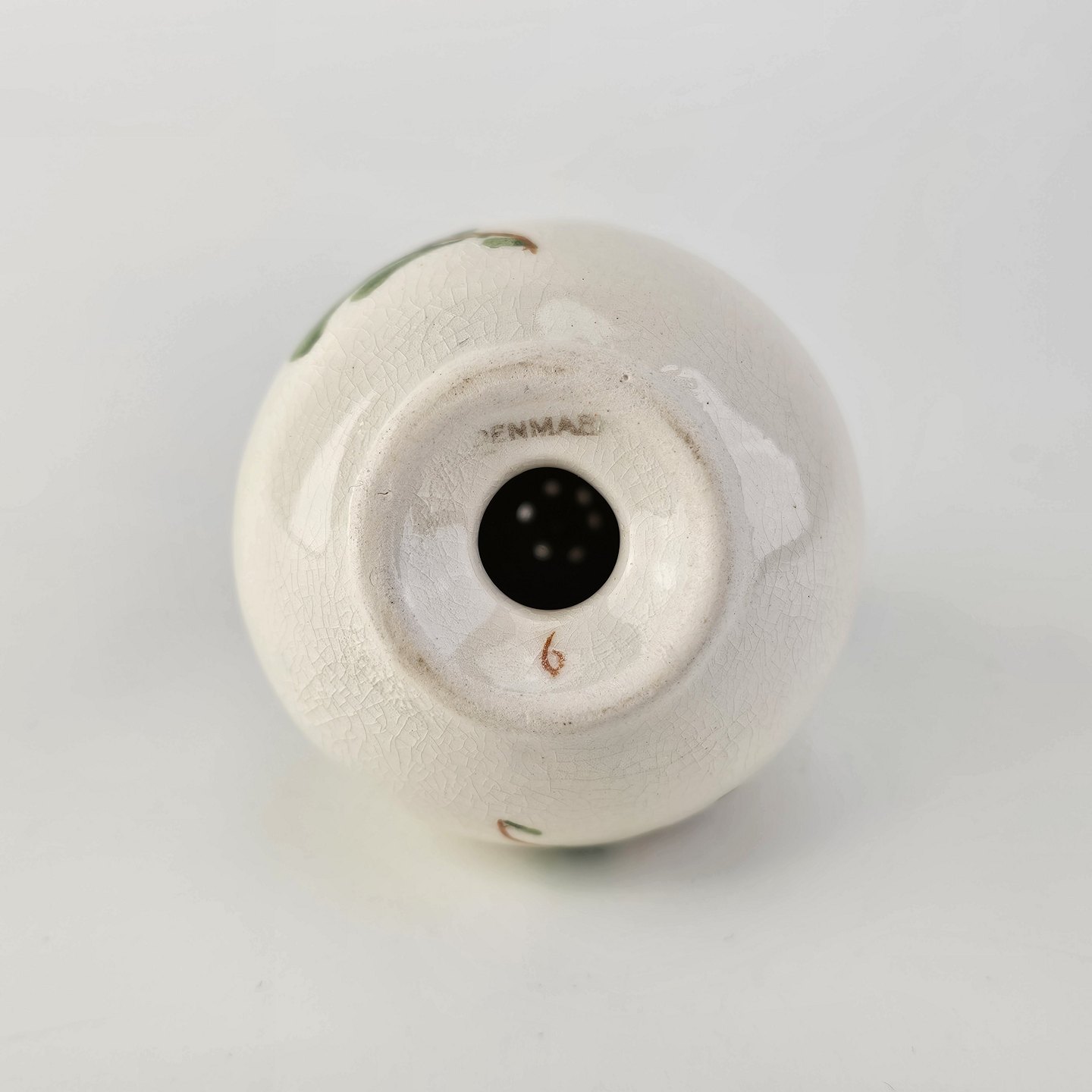 Saltbøsse eller peberbøsse i fajance fra stellet Maj fremstillet i perioden 1941-1966.