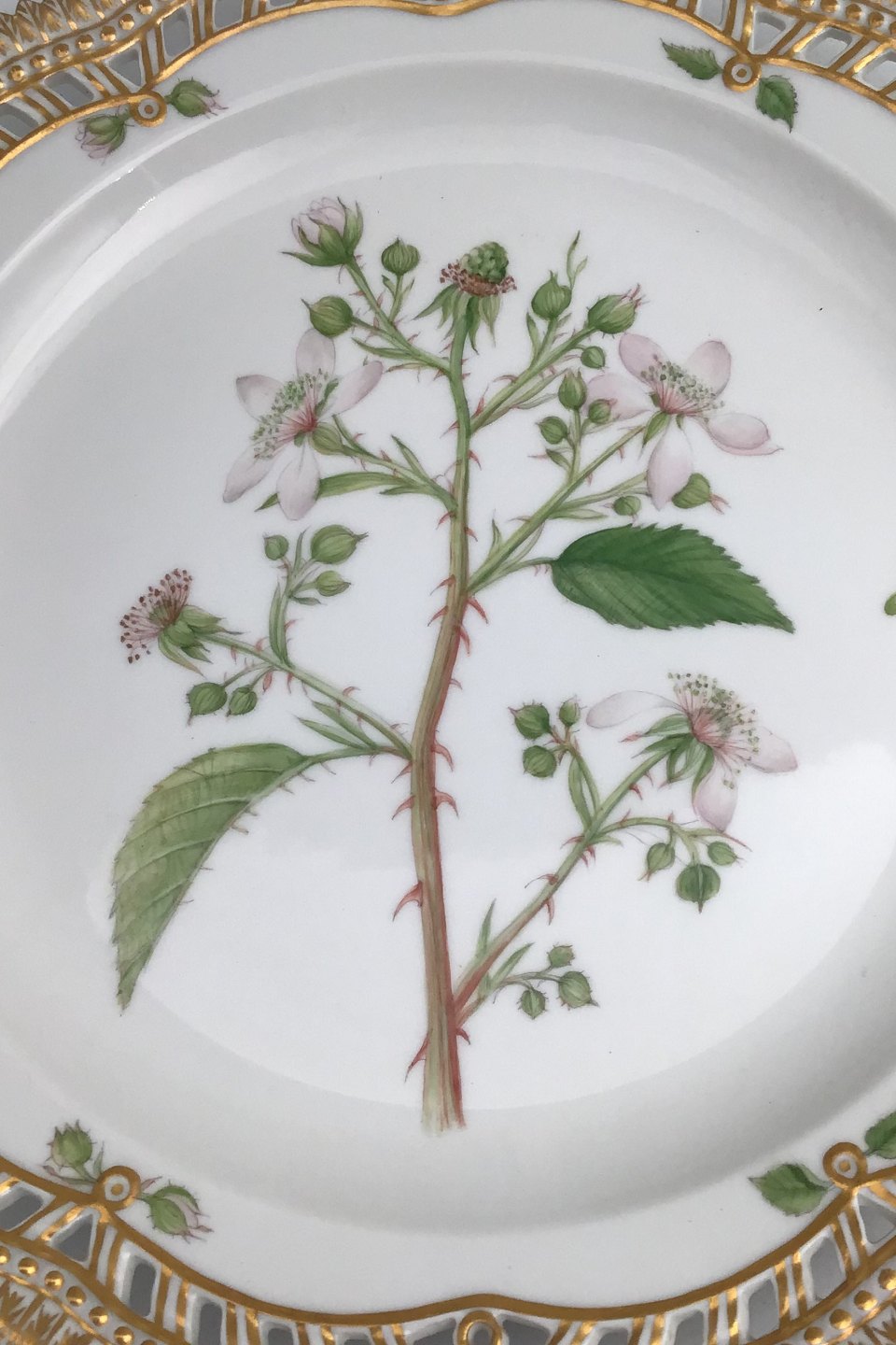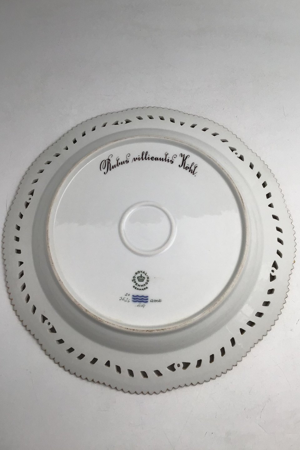 Royal Copenhagen Flora Danica Plate with pierced border No. 20/3526. Measures 27cm / 10.63 inch. 1st Quality Latin name: Rubus villicaulis Köhl.
