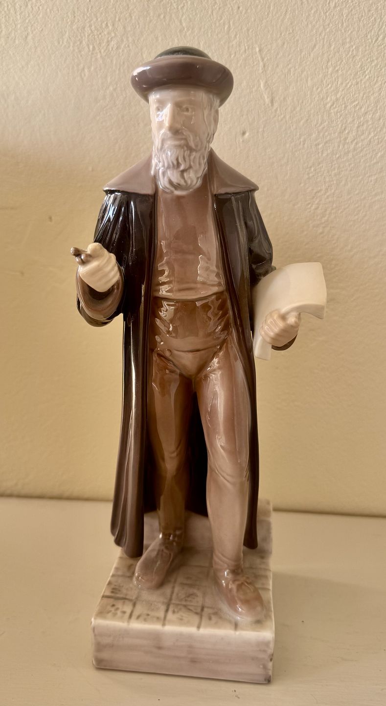 Johann Gutenberg figur i porcelæn fra Dansk Typograf-Forbund