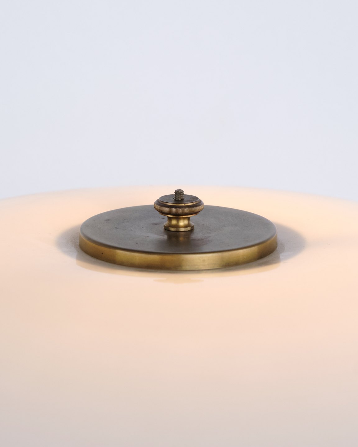 PH 4/3 bordlampe i bruneret messing med opalglas fra Louis Poulsen, 1930’erne. Mærket "Patented" og designet af Poul Henningsen.