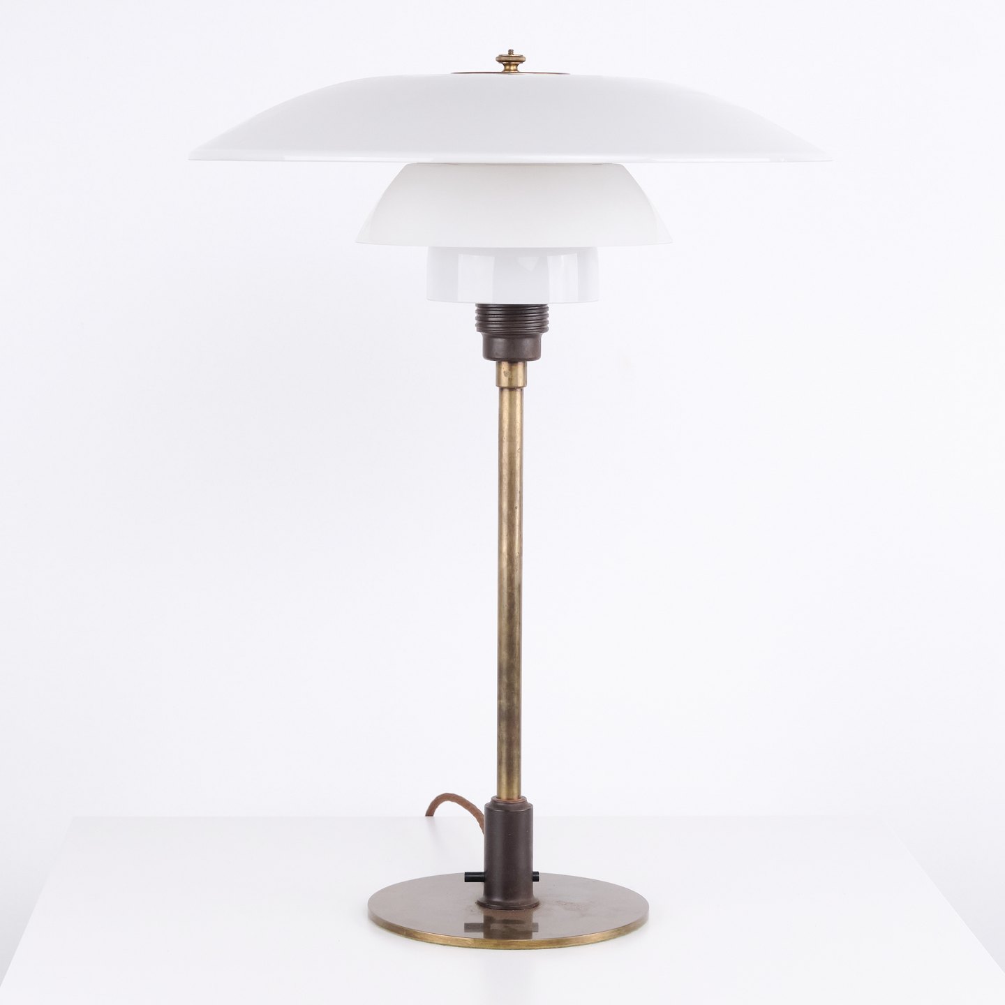 Poul Henningsen Bordlampe Model PH 4/3 i bruneret Messing for Louis Poulsen fra 1930erne