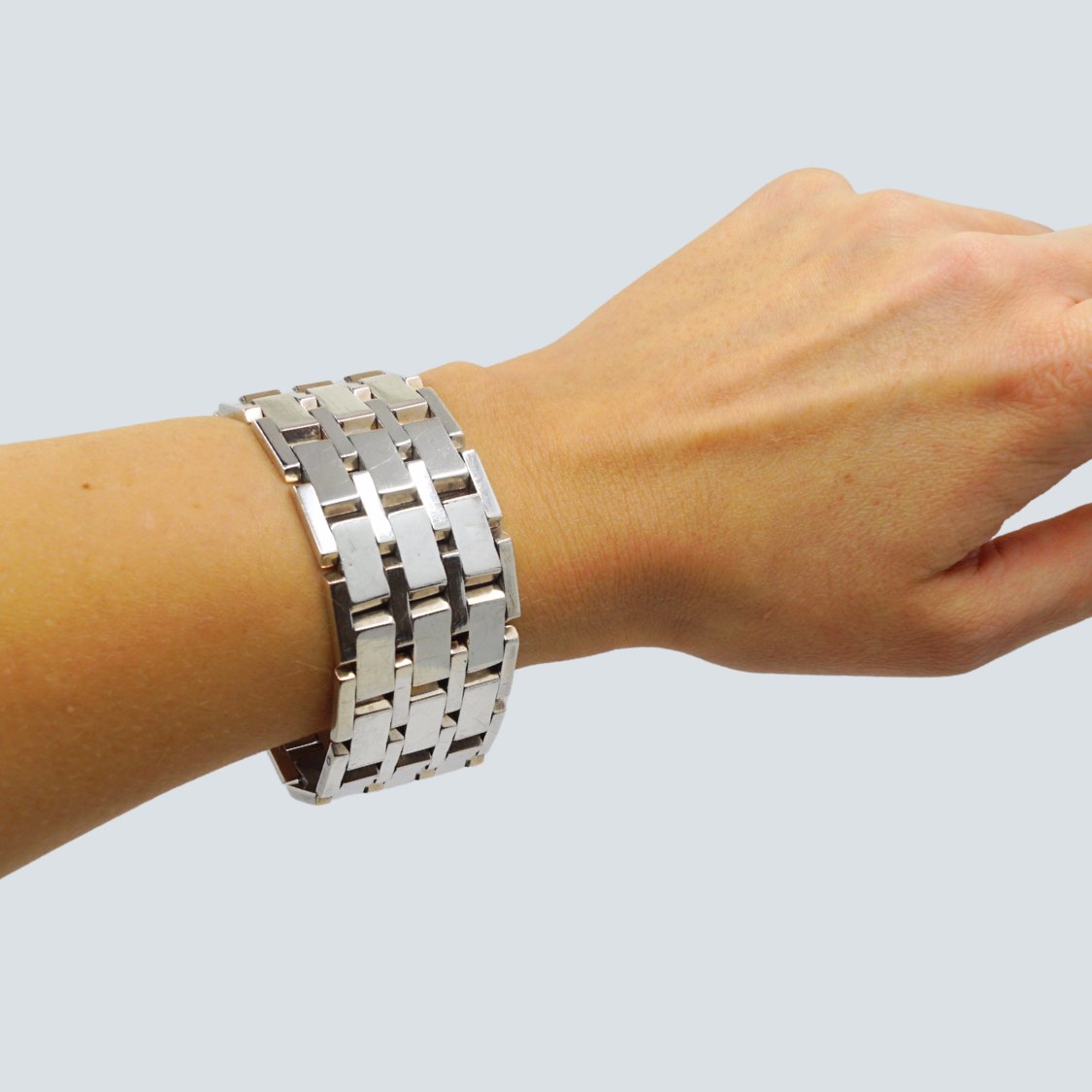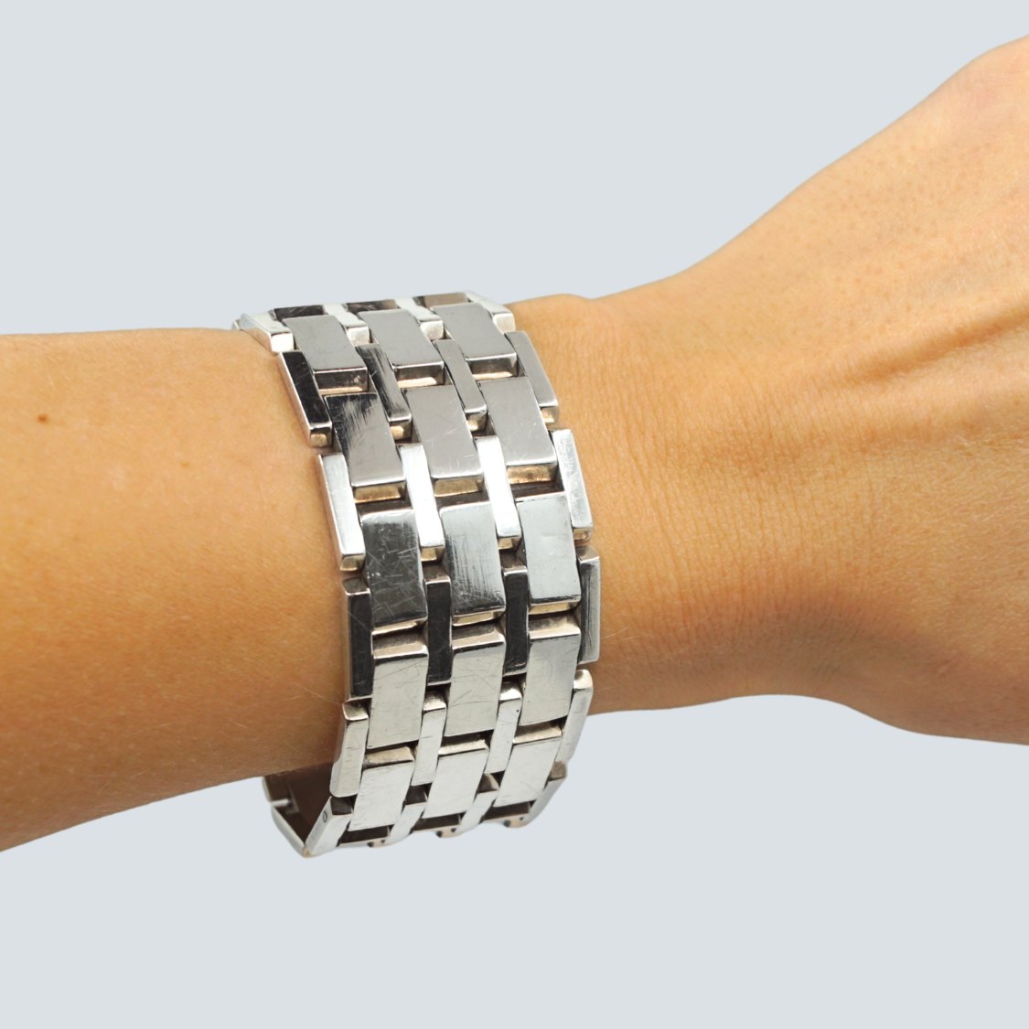 A. Michelsen; Bredt blokarmbånd af sterlingsølv.