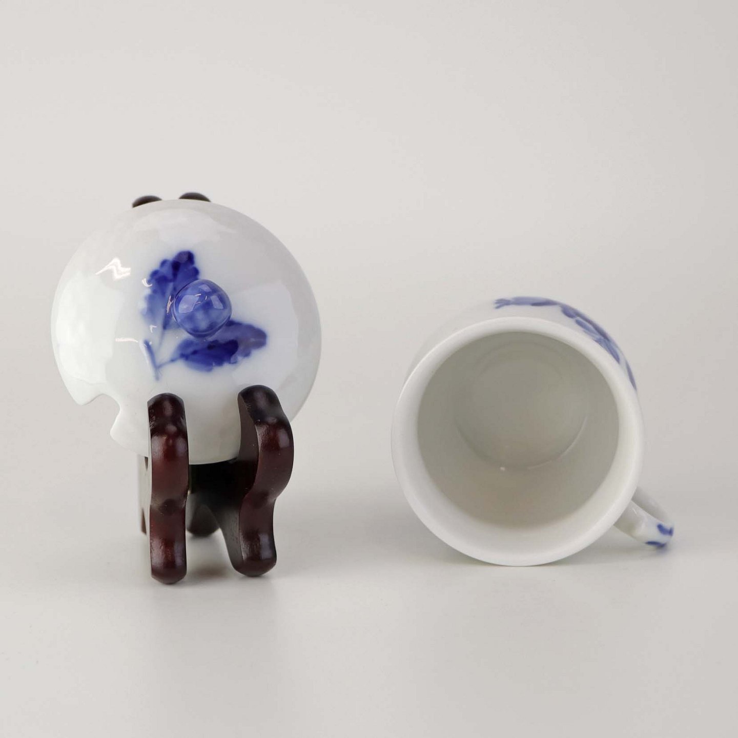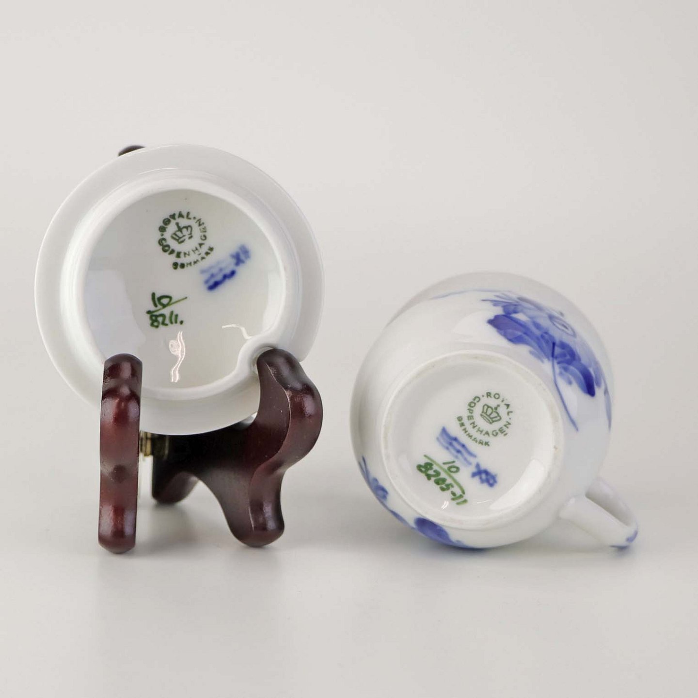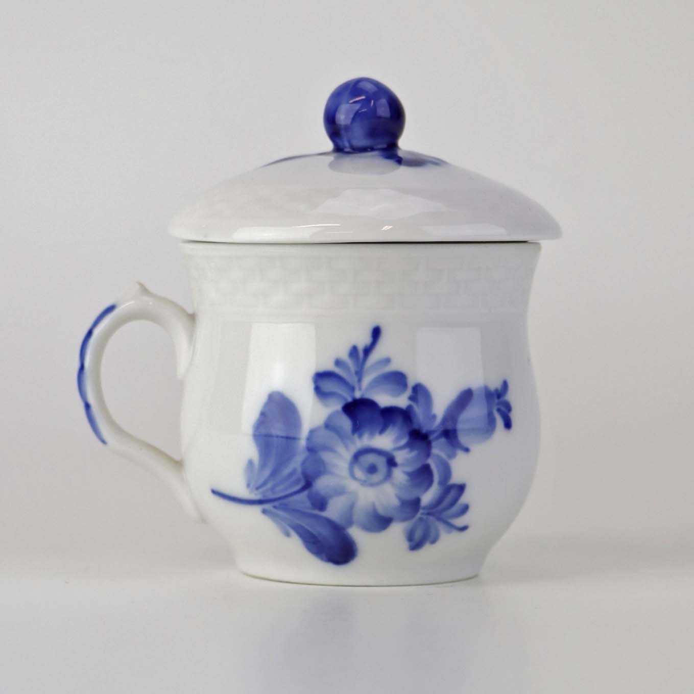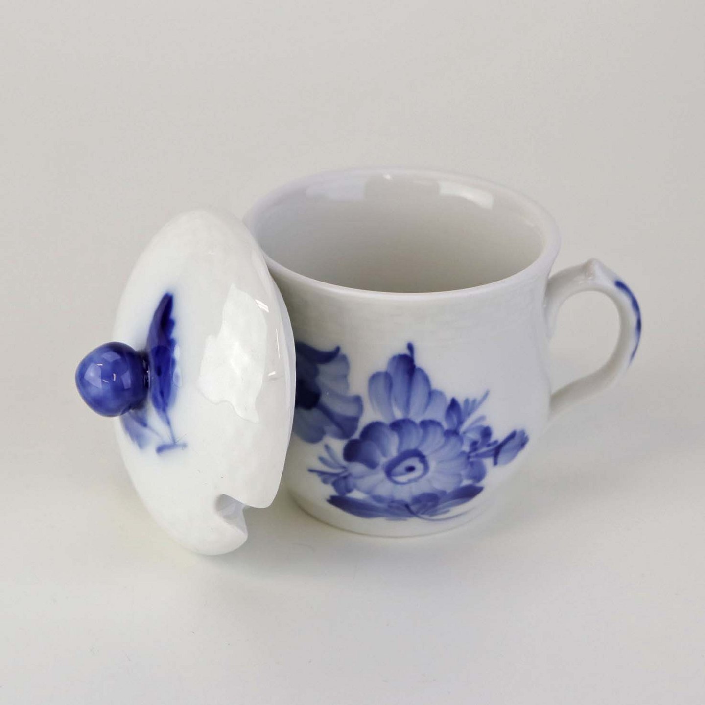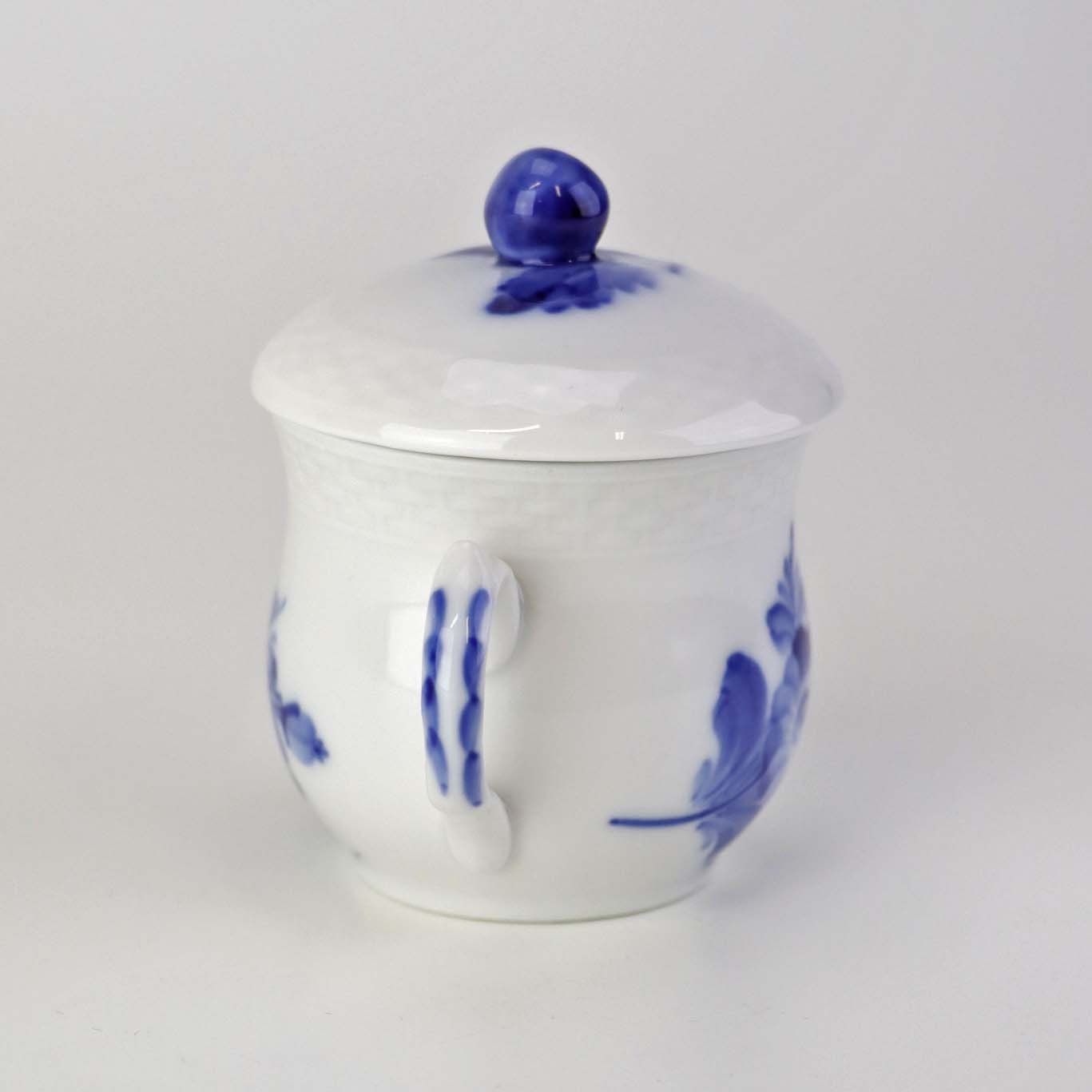 Sennepskop i kongeligt porcelæn fra stellet Blå Blomst flettet. Nr. 10/8211 og 10/8205-11 .