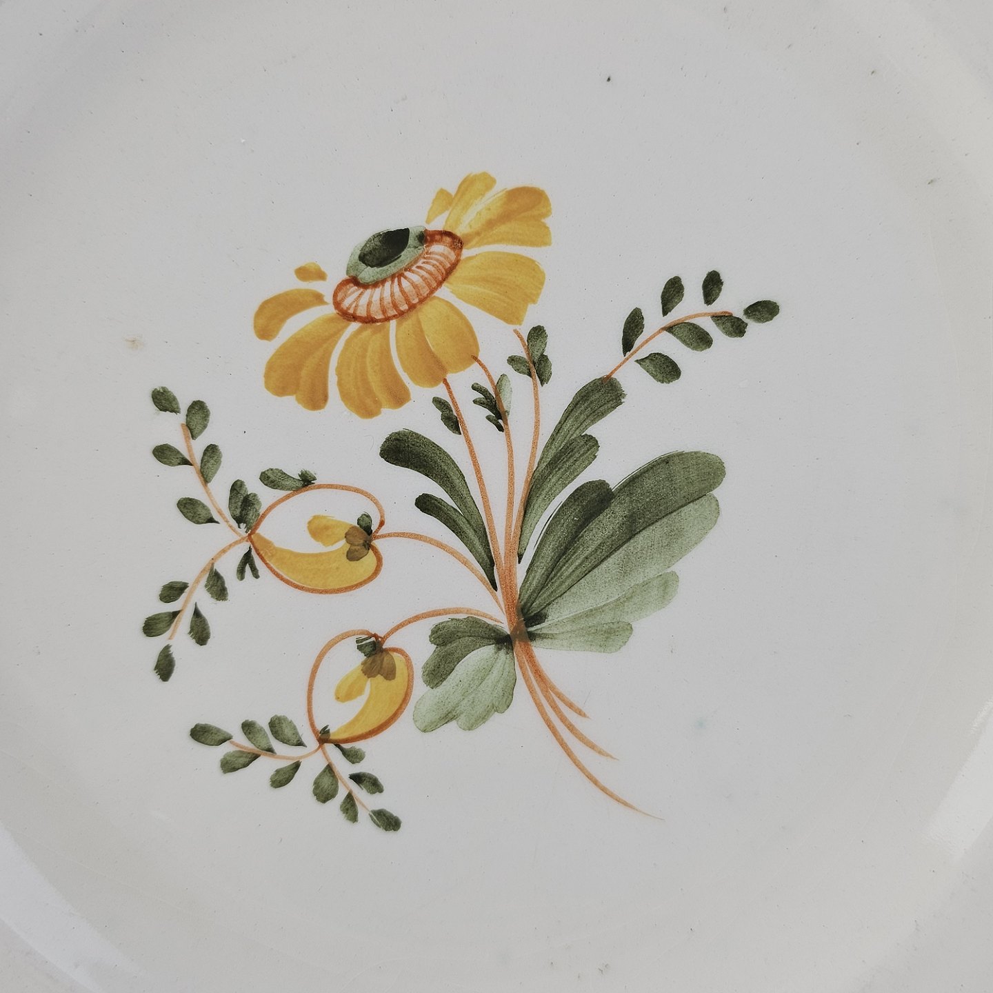 Flad tallerken i fajance fra stellet Maj fremstillet i perioden 1941-1966.