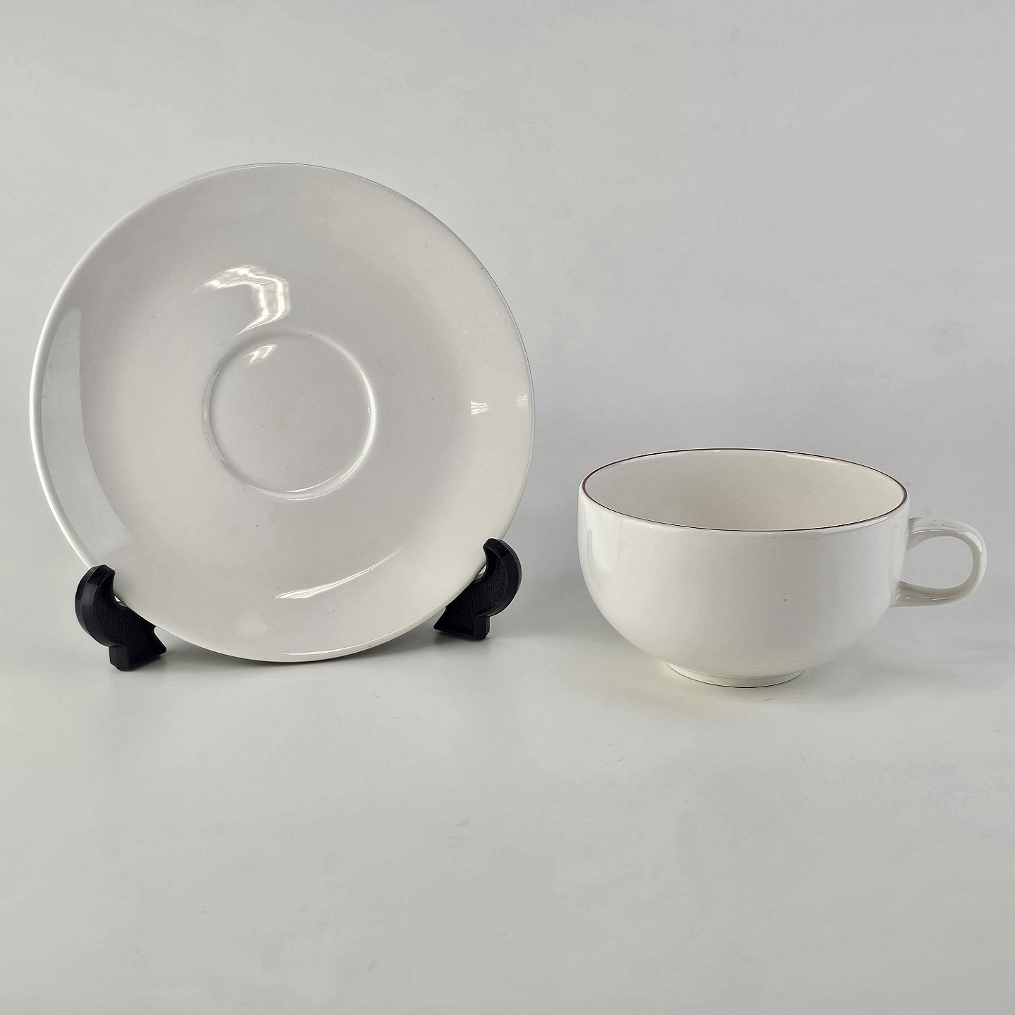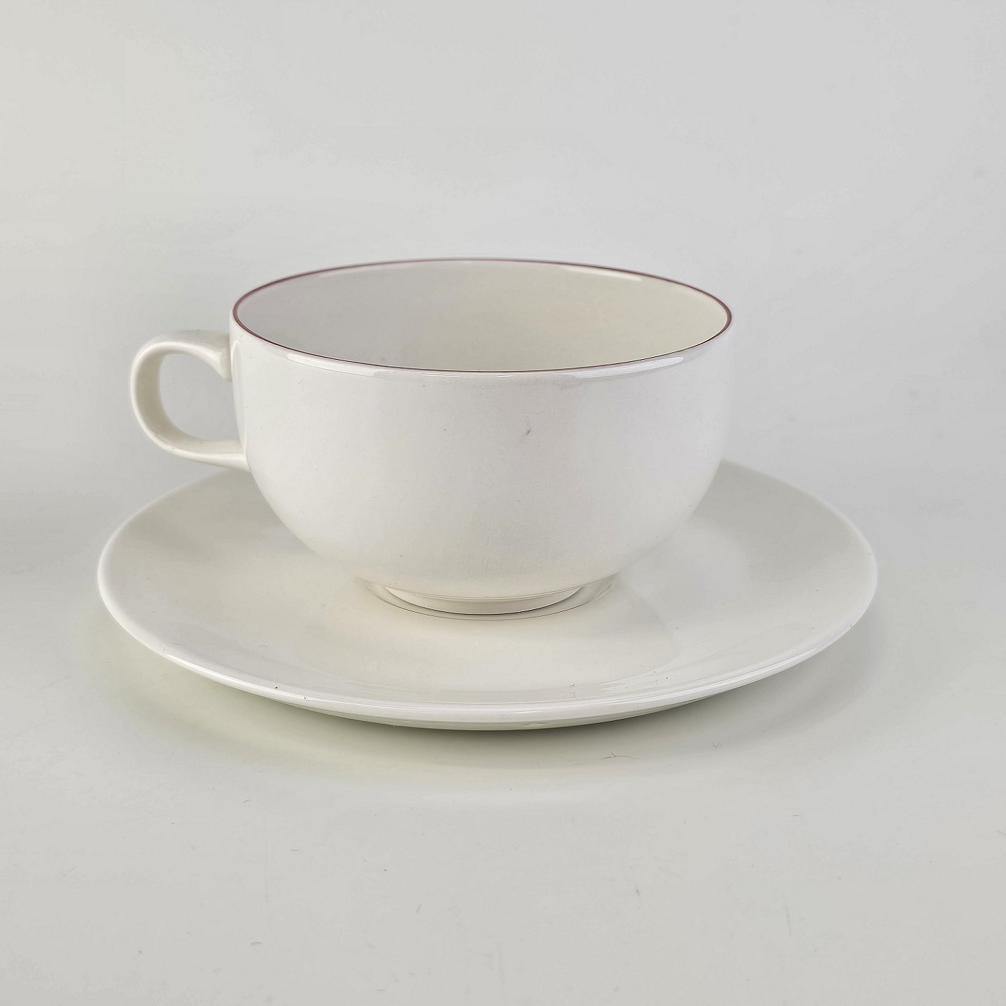 Stor hvid morgenkop med underkop i fajance fra stellet 4 All seasons