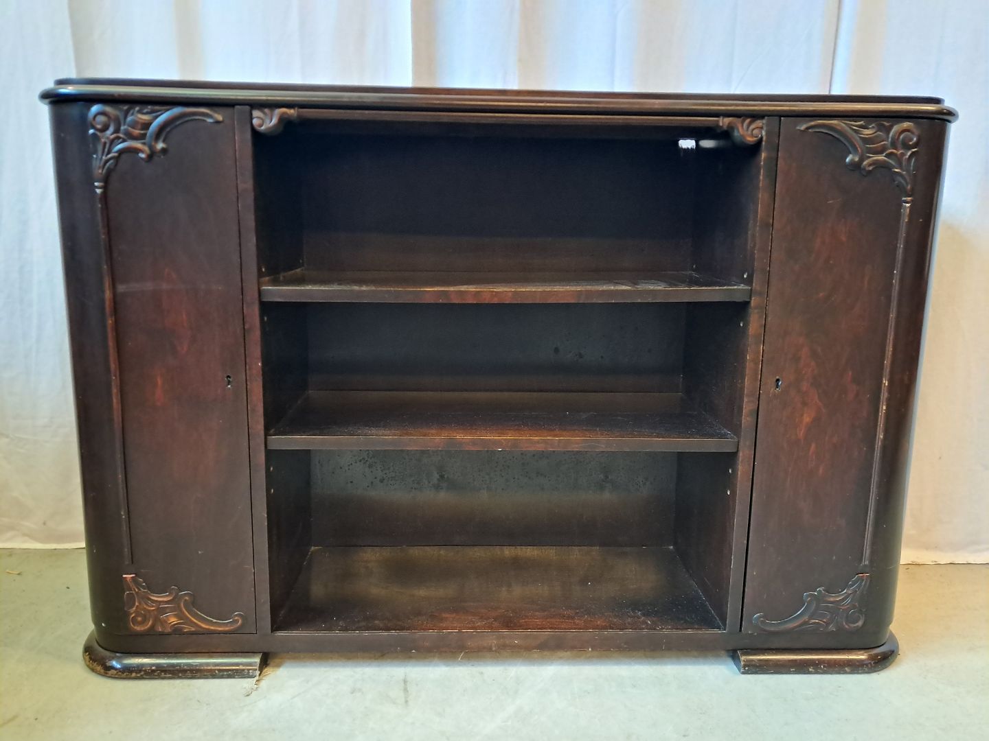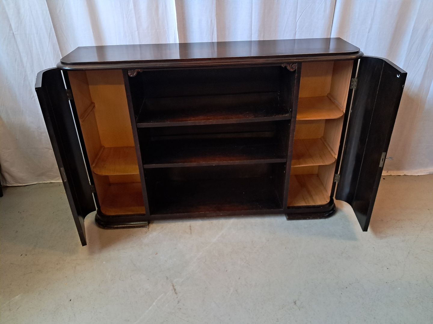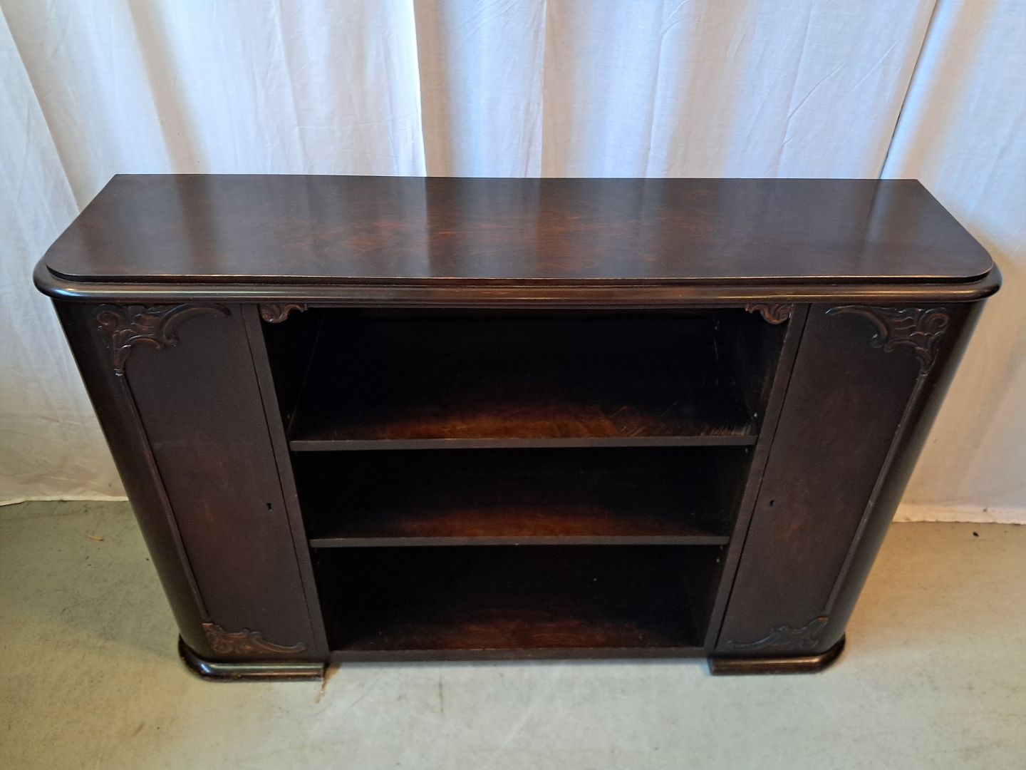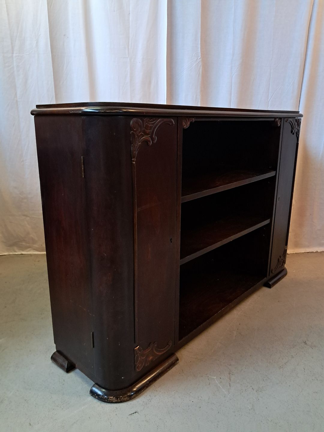 Reol i fineret birketræ, fra 1930erne.