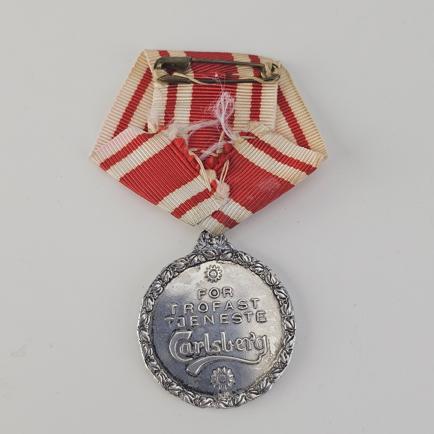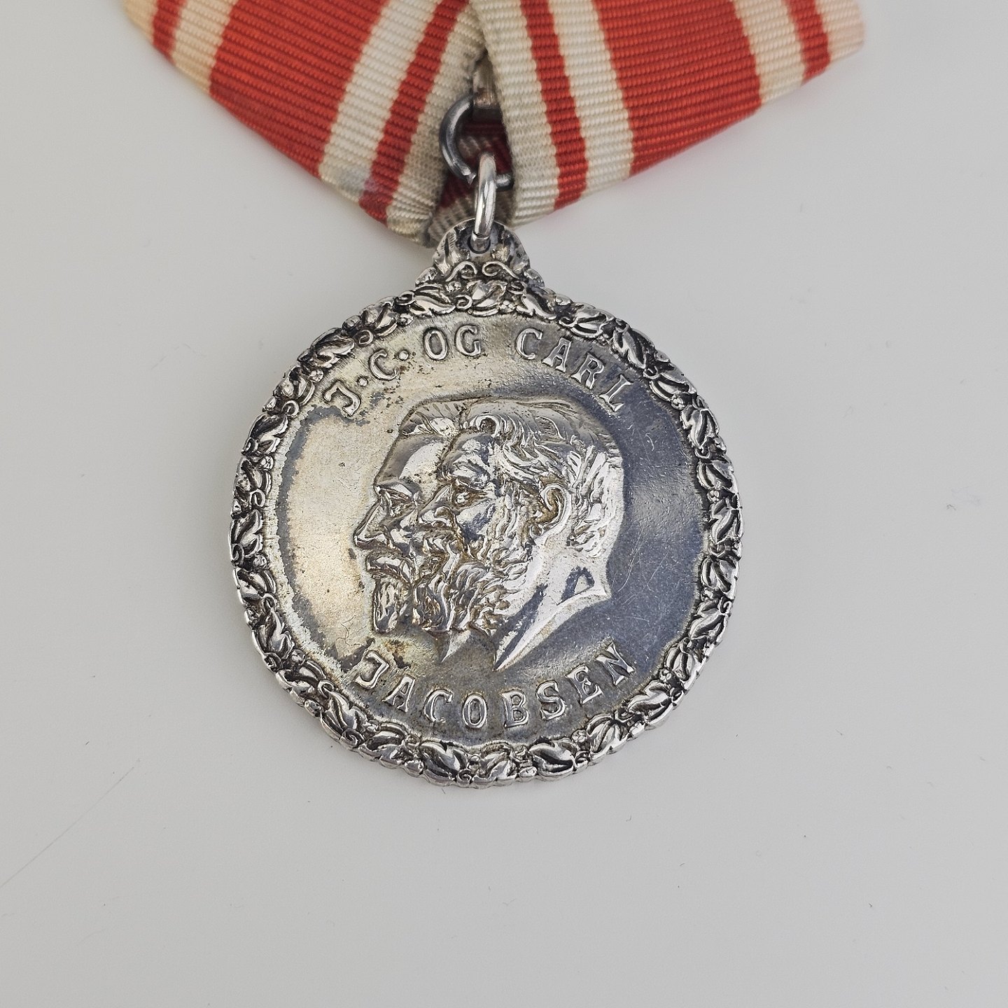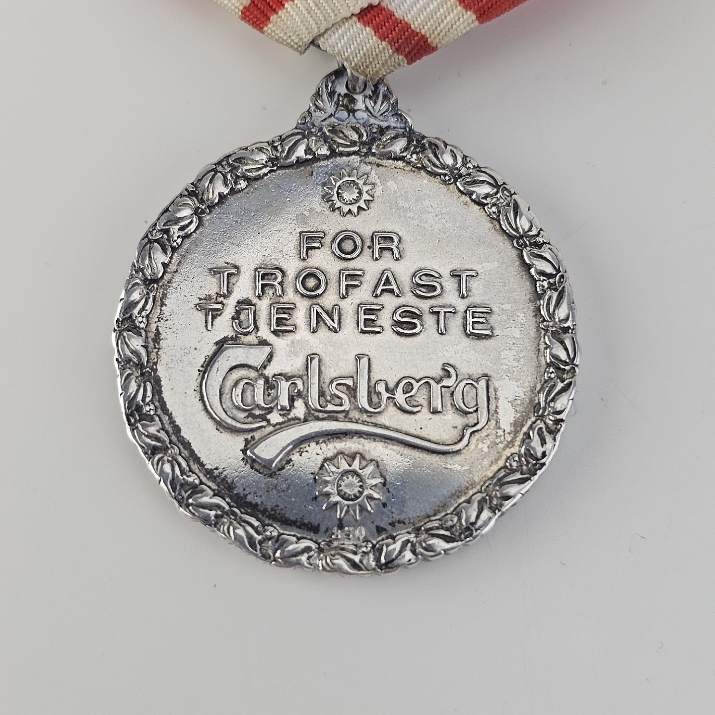 Medalje i sølv 999 med J.C. og Carl Jacobsen graveret på den ene side og "For trofast tjeneste" Carlsberg på den anden