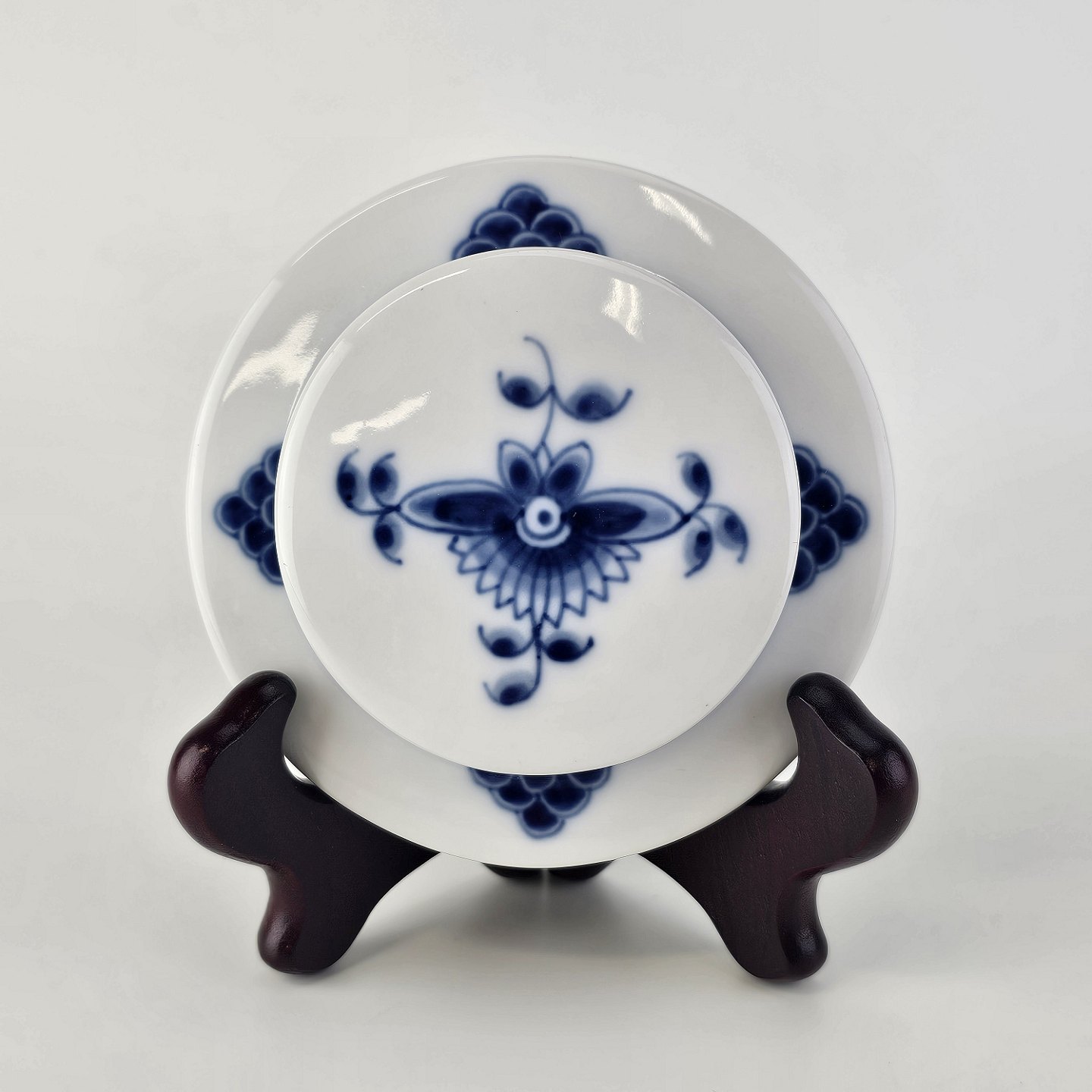 Lågkrukke i kongeligt hvidt porcelæn med musselmalet dekoration