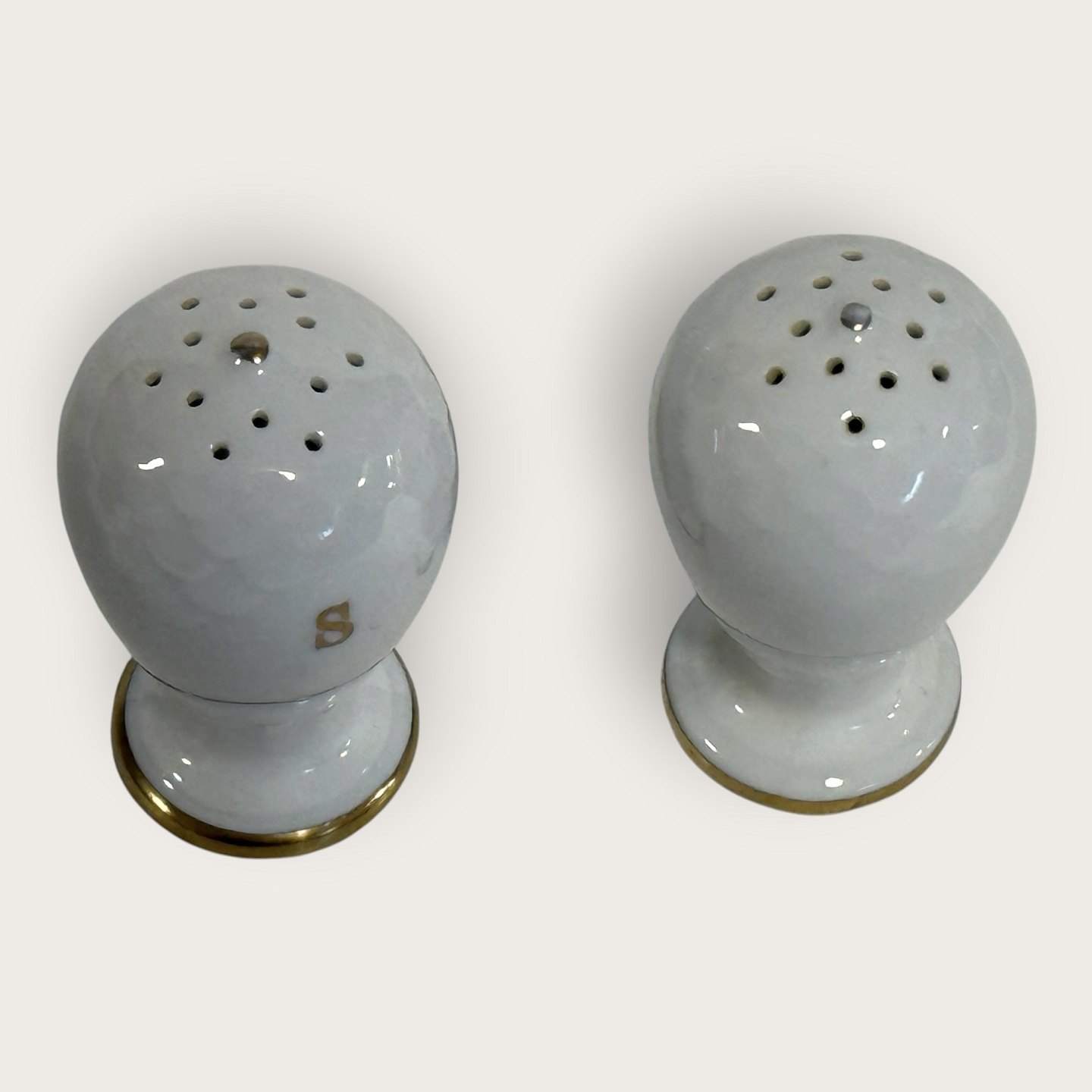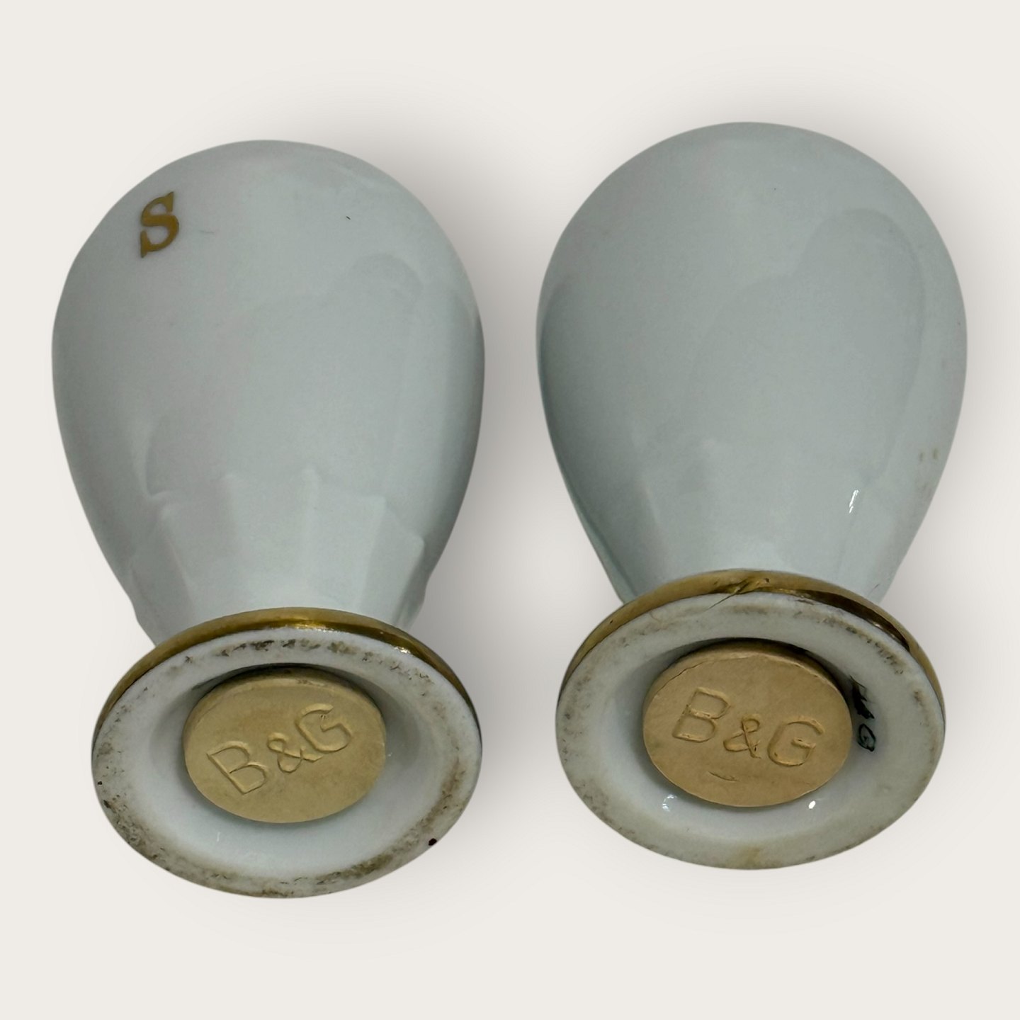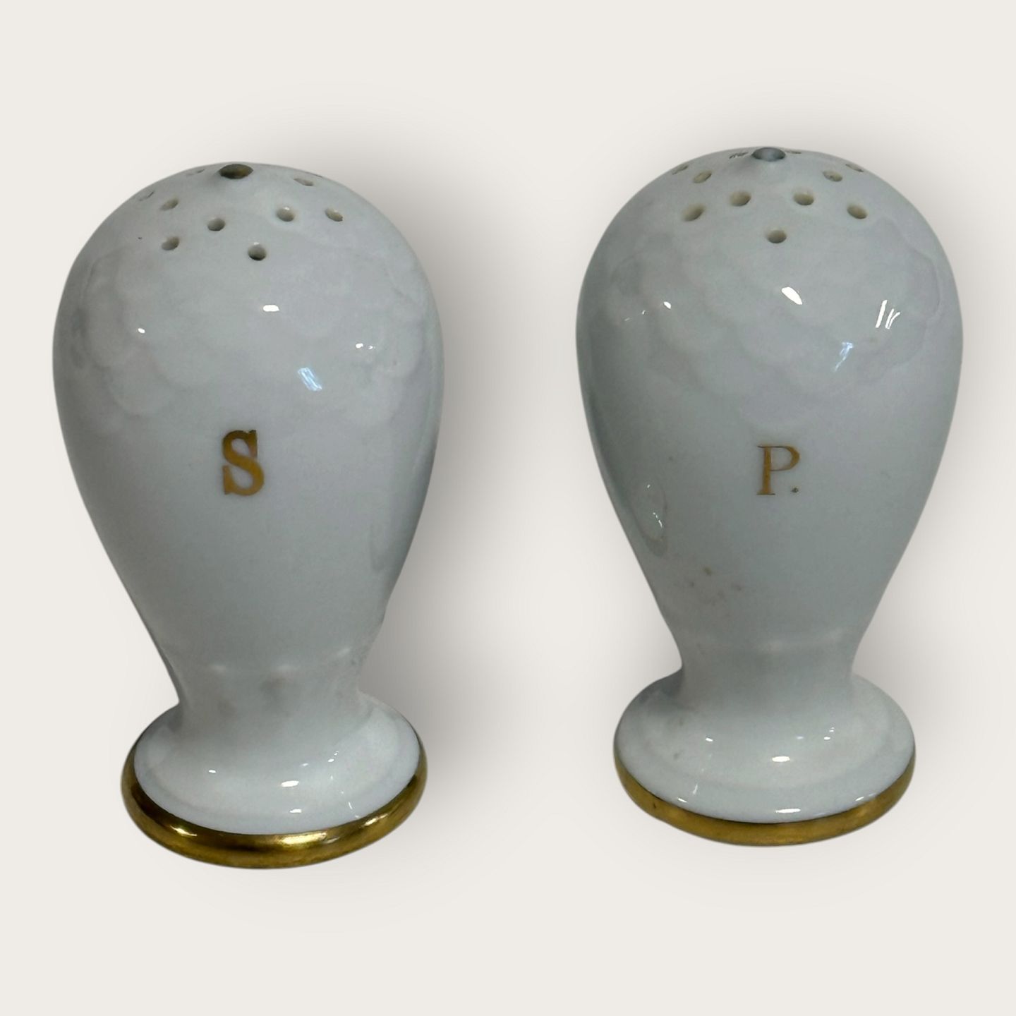 Bing & Grøndahl, Aakjær, Hvid porcelæn med guldkant, salt og pebersæt 7cm høj, 1.sortering *Pæn stand*