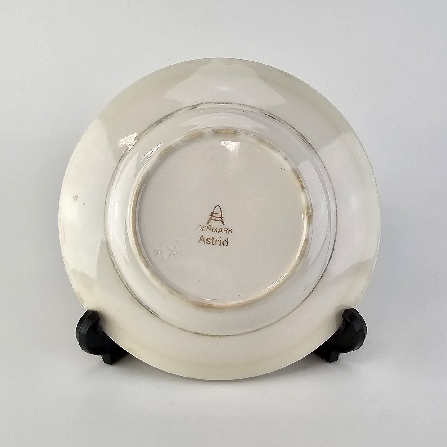 Flad kagetallerken i fajance fra stellet Astrid fremstillet i perioden 1937-1958