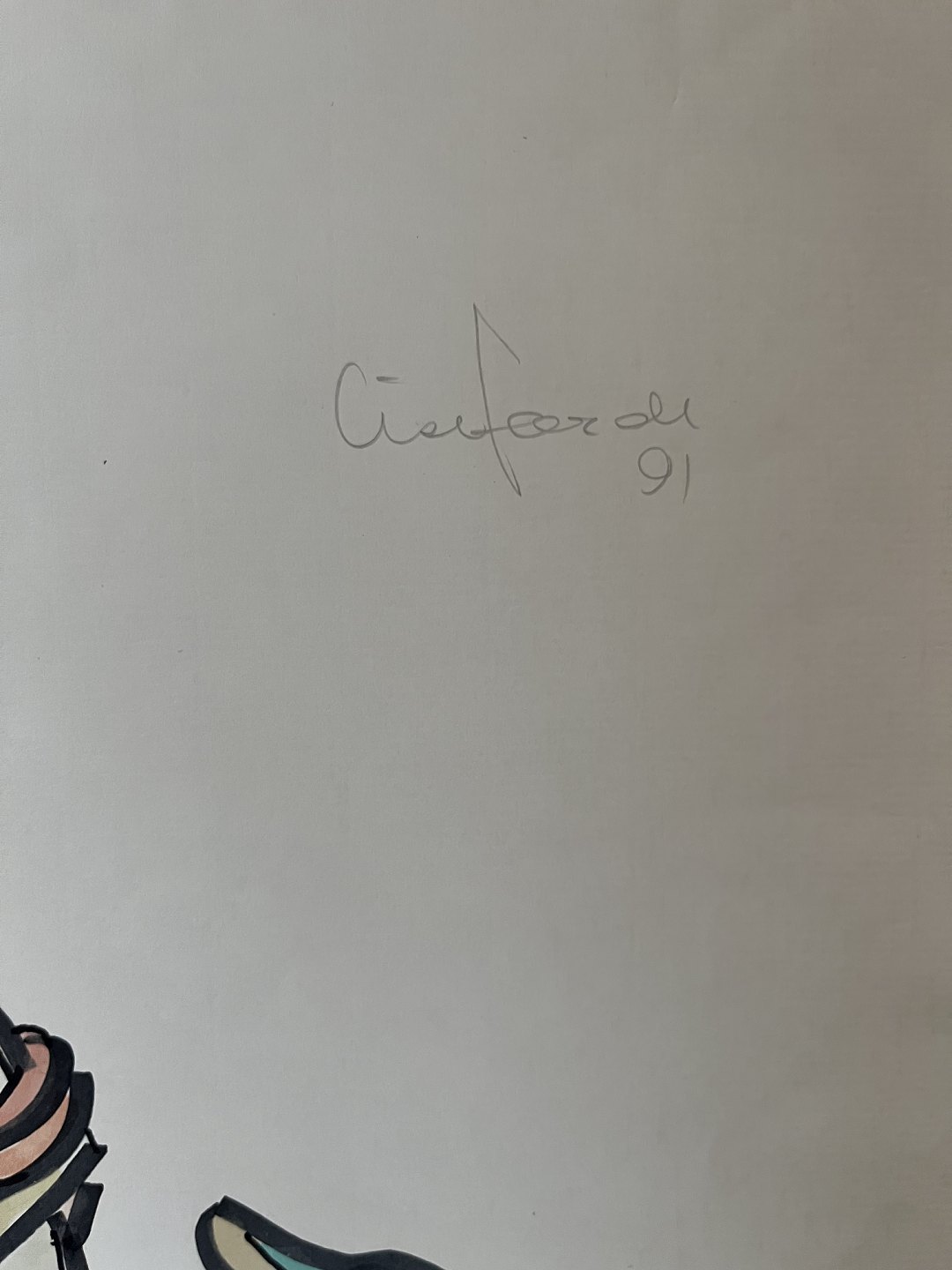 Akvarel af Lise Færch - Kvinde med forskellige dyr 1991