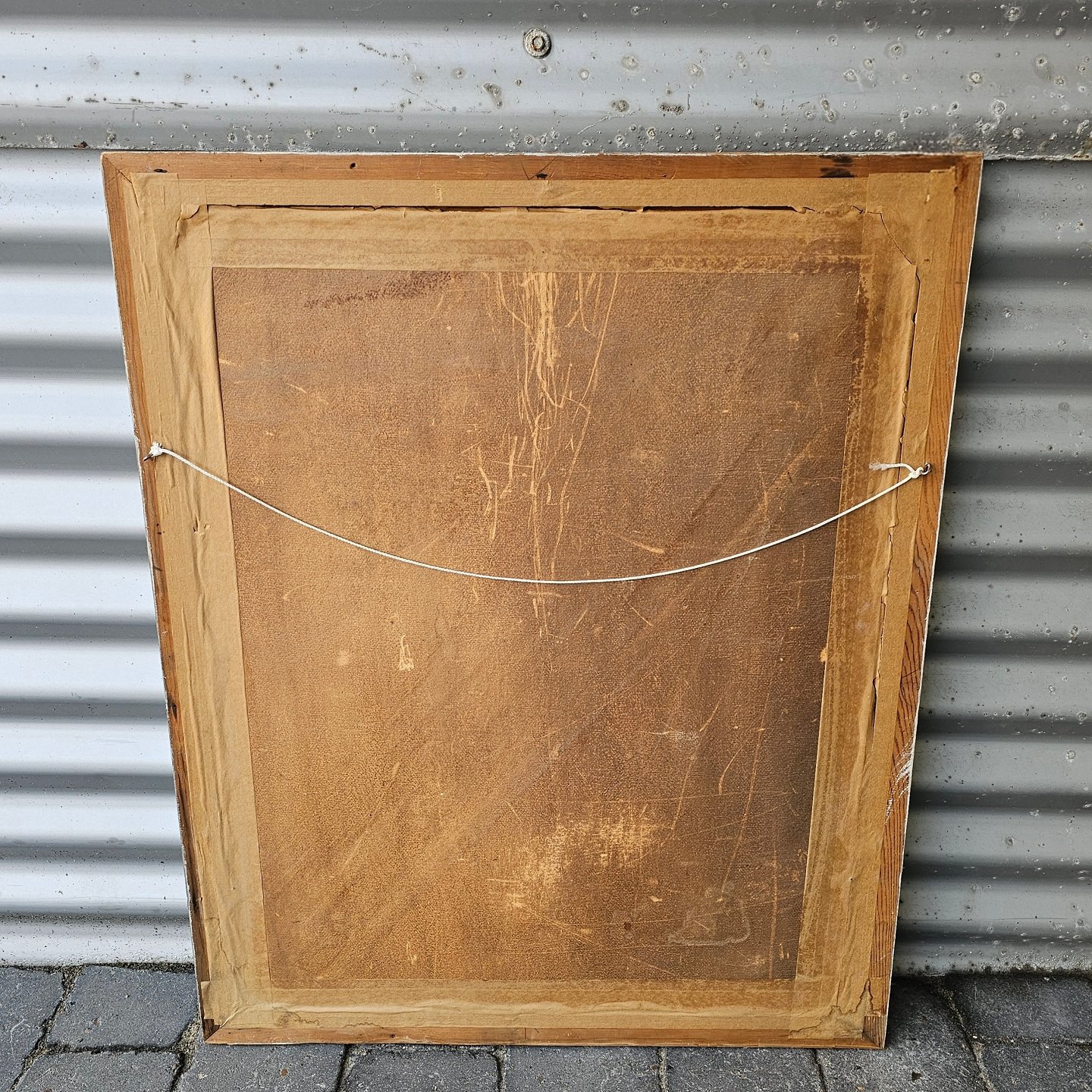 Oliekridt på papir monteret i hvidmalet ramme med motiv af en klovn