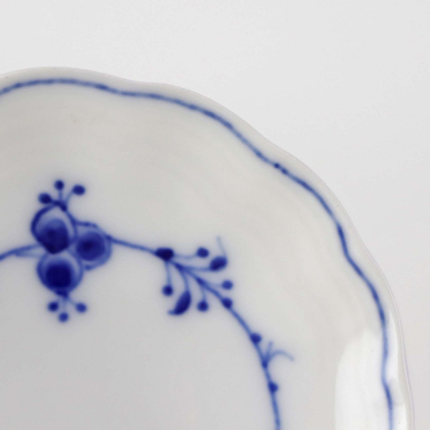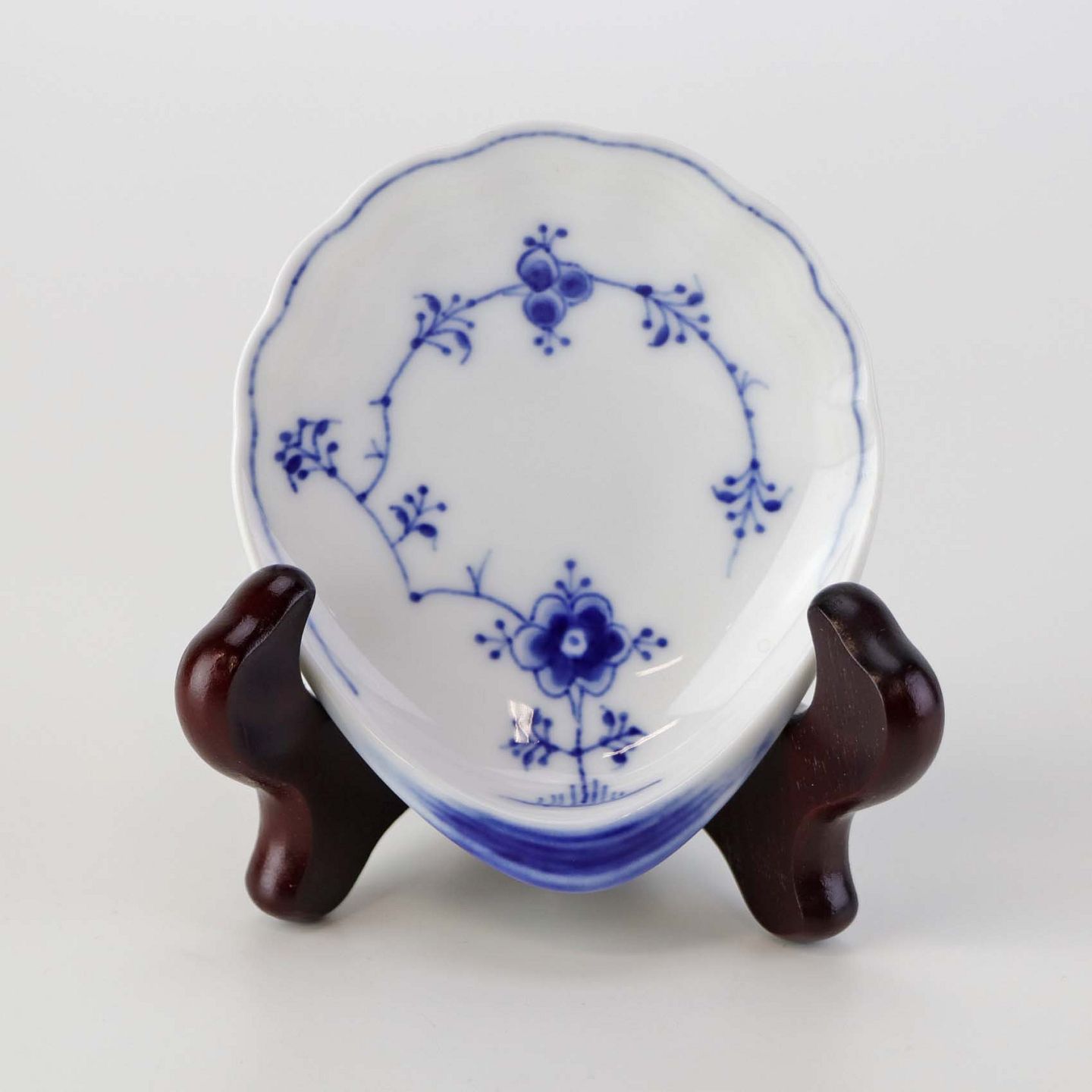 Muslingeformet kuvertasiet i porcelæn fra stellet Blåmalet. Nr. 200