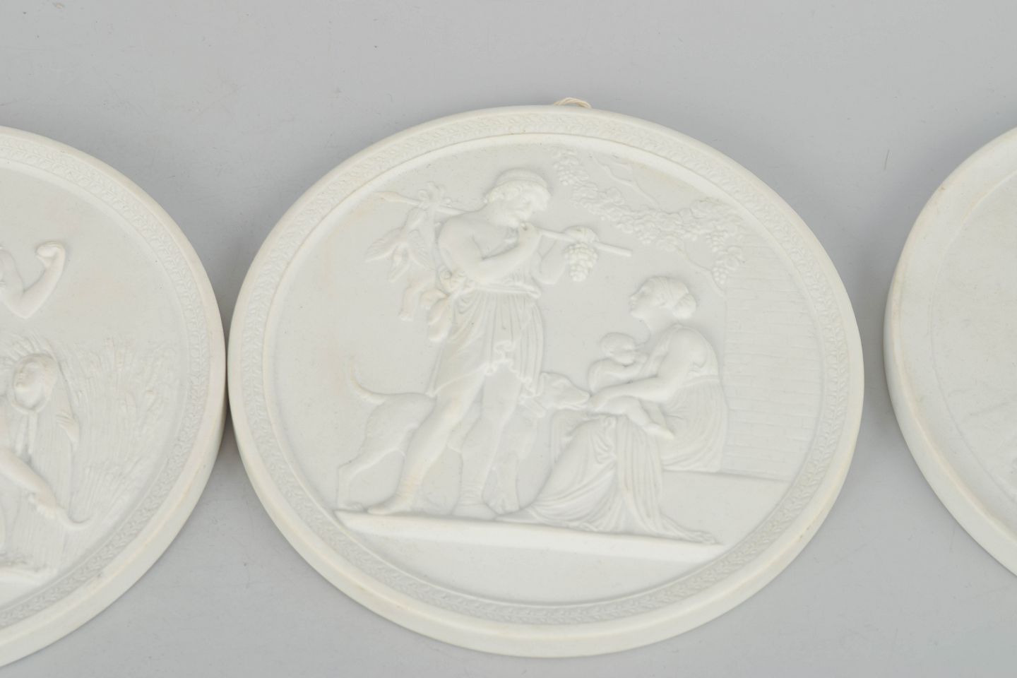 Royal Copenhagen, sæt af tre biscuit vægrelieffer efter Thorvaldsen.