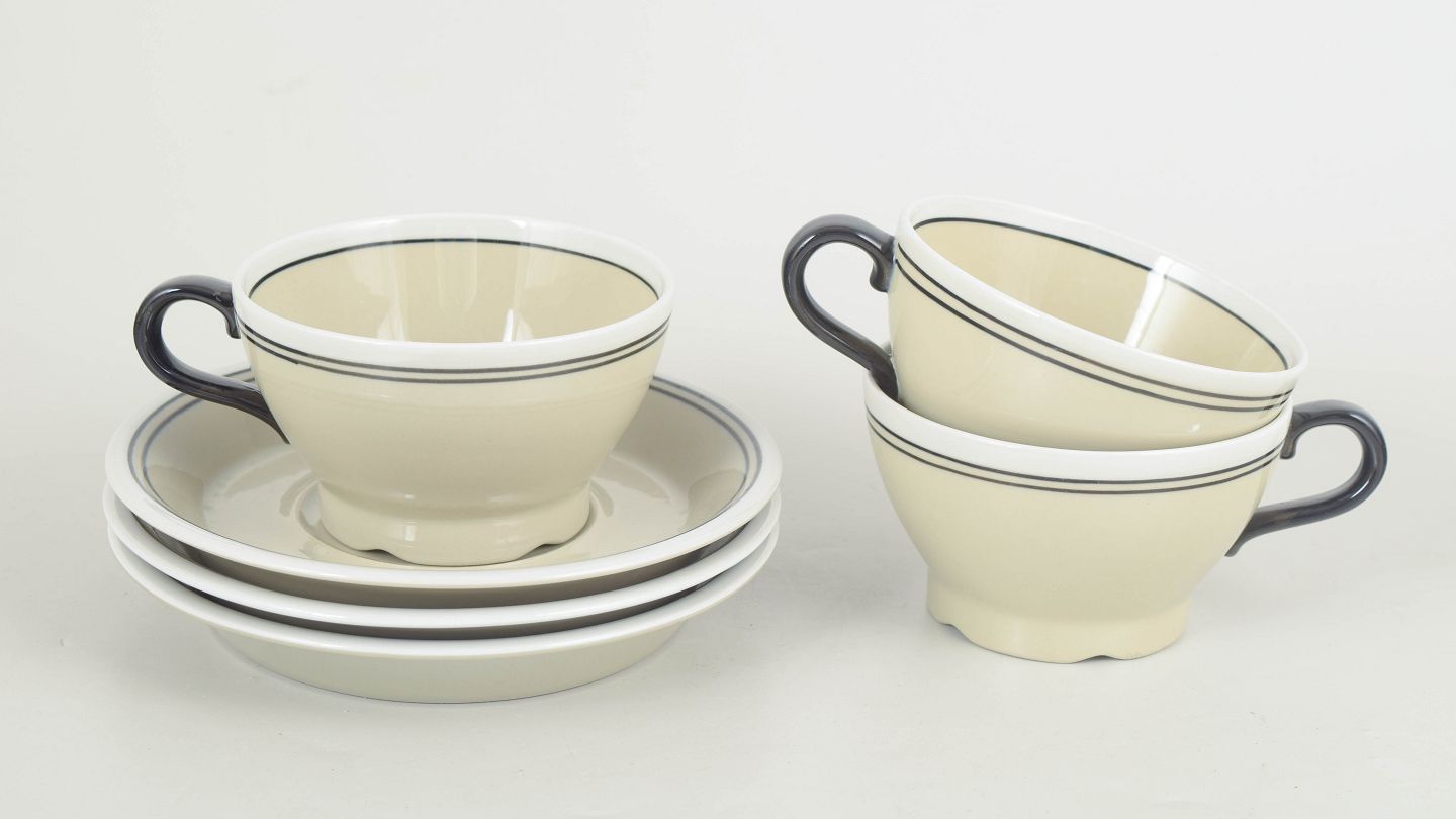 Jackie Lynd for Rörstrand, sæt af tre tekopper med tilhørende underkopper “Nocturne”.