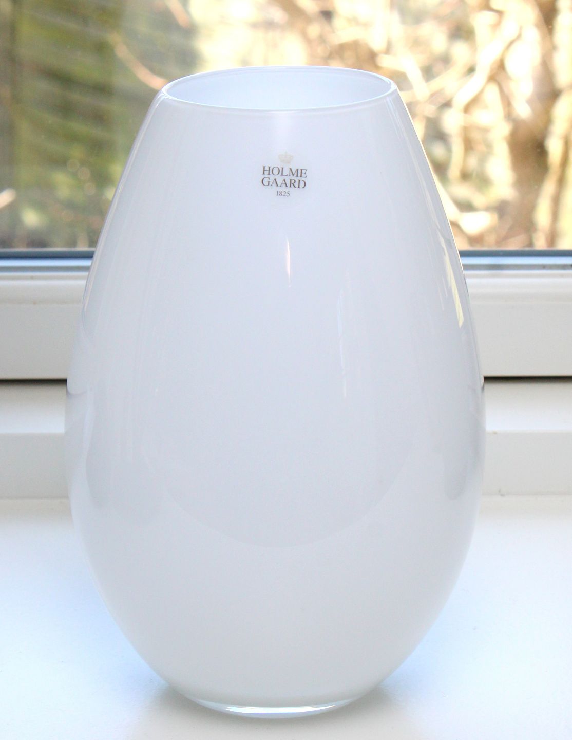 Holmegaard, Cocoon mellemstor vase i hvid gennemfarvet glas. Designet af Peter Svarrer i 2005. Højde 21 cm. Øverste diameter 7,5 cm. Største diameter 14 cm. Trykt signatur og Holmegaard label. I. sortering. Pris: 375 kr. stk. Lager: 1