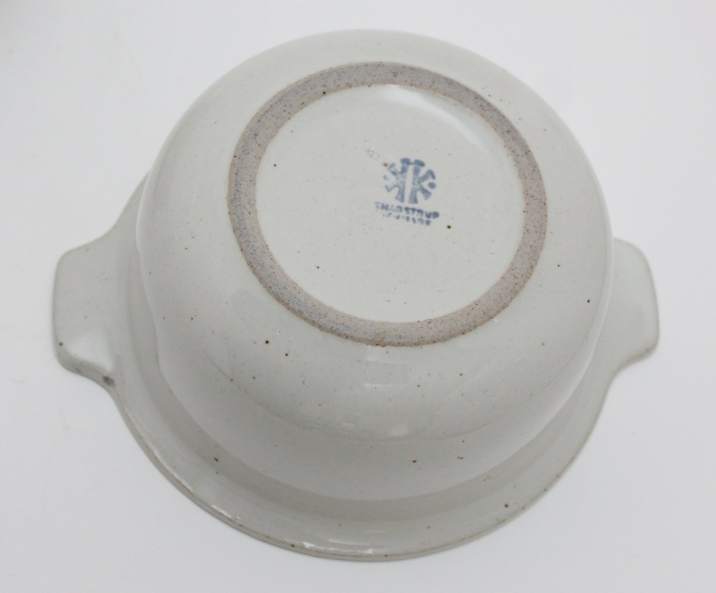 Knabstrup, Skåle med hank eller ører i stentøj, 2 stk. Højde 6 cm. Diameter 14 cm. Fin stand. Pris for sættet: 175 kr.