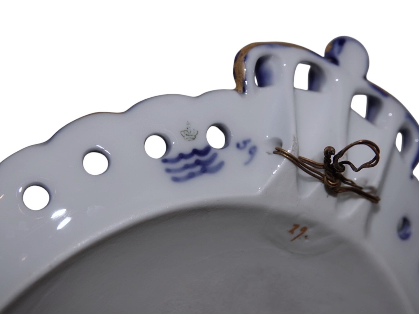 Royal Copenhagen Mindeplatte fra 1898 med guldkant