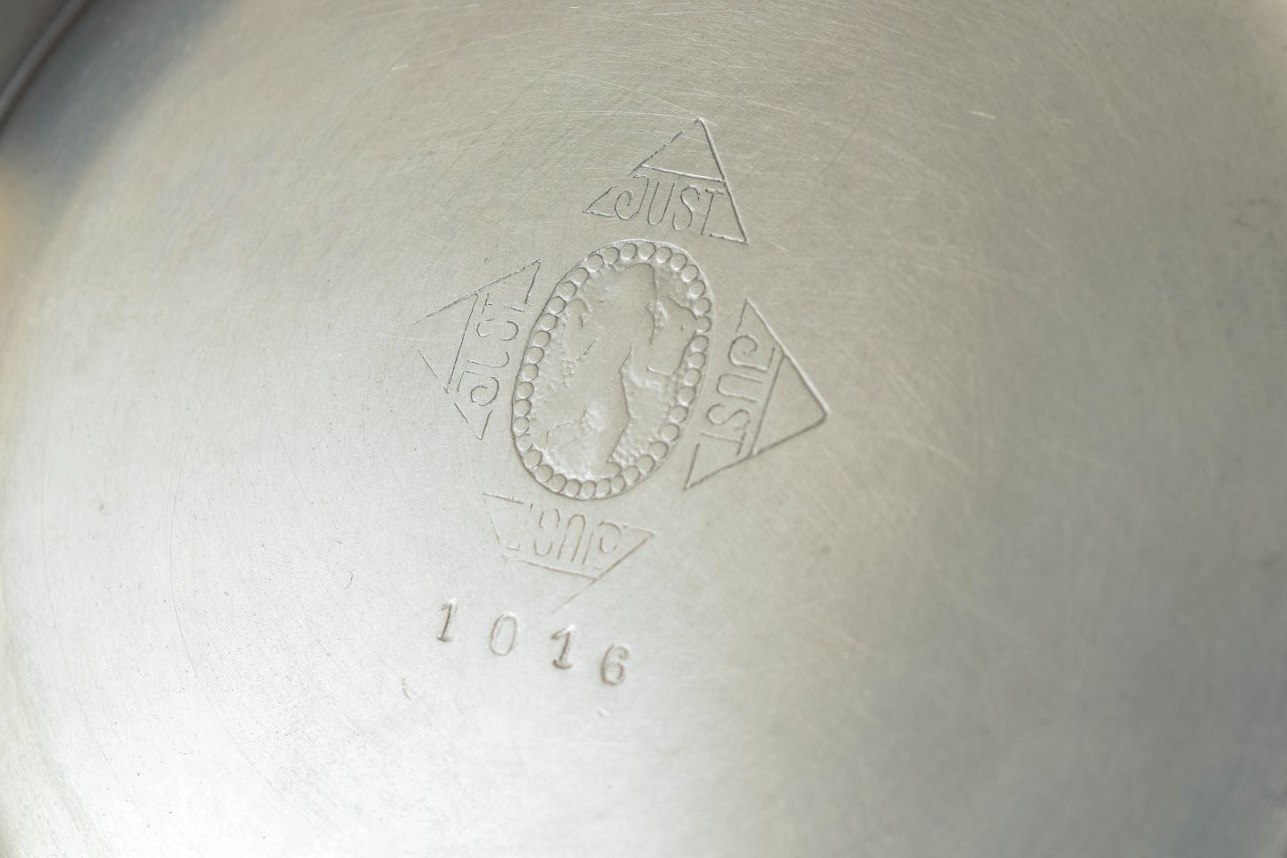 Just Andersen (1884–1943) was a Danish sculptor, silversmith, and designer. He is especially known for his works in pewter, disko metal, and other alloys, often executed in a restrained and refined art deco style. Andersen established his own workshop in Copenhagen and is regarded as a central figure in Danish decorative arts in the first half of the twentieth century.