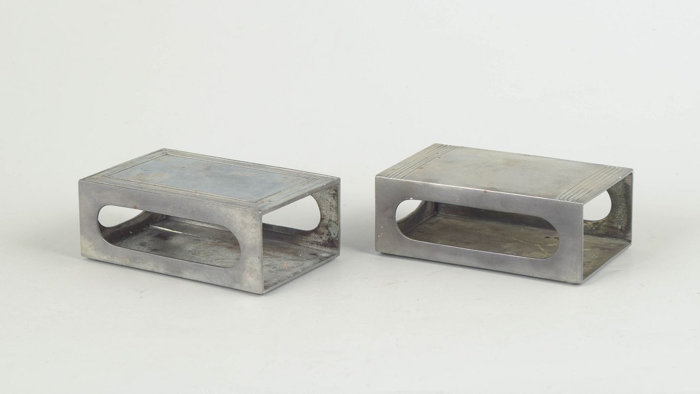 Two matchbox holders in pewter, executed in a simple and refined art deco design. Models 1496 and 1627.