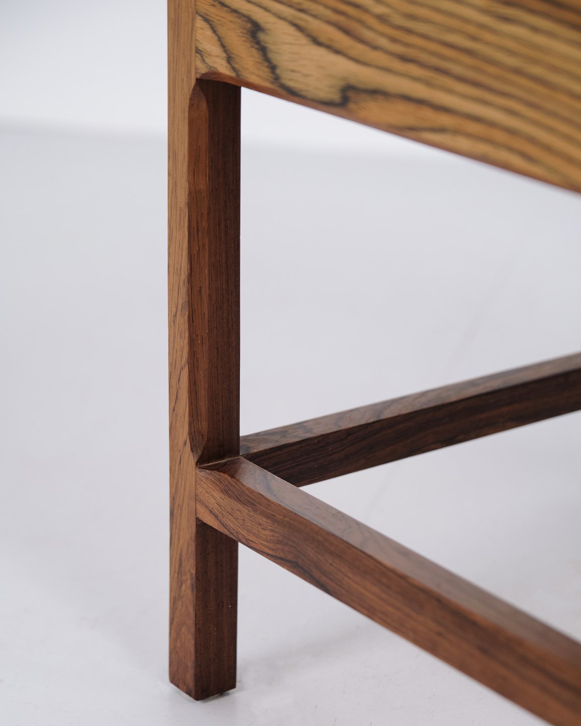 Blomsterkasse designet af Kai Kristiansen for Aksel Kjersgaard i 1960’erne. Udført i palisander med markant åretegning og fine snedkerdetaljer. Den kvadratiske form og hævede konstruktion afspejler de rene linjer i dansk modernisme. Aksel Kjersgaard var kendt for høj kvalitet og samarbejder med flere toneangivende danske designere. Velegnet som blomsterkumme, interiørmøbel eller opbevaring.