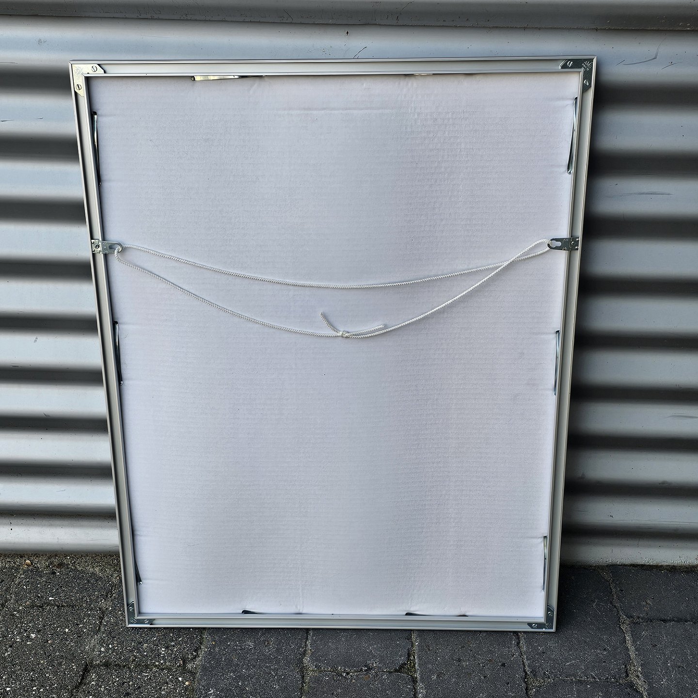 Litografi med abstrakt motiv i sort og blå monteret i sølvramme