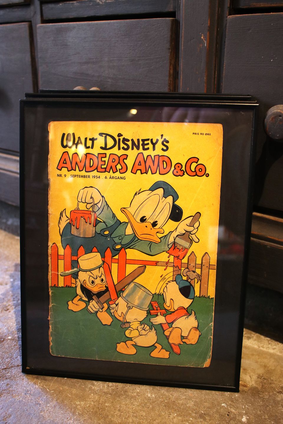 Dekorative , gamle Walt Disney Anders And blade fra årgang 1954 & 55 , er indrammet i sort ramme. 30x24cm...