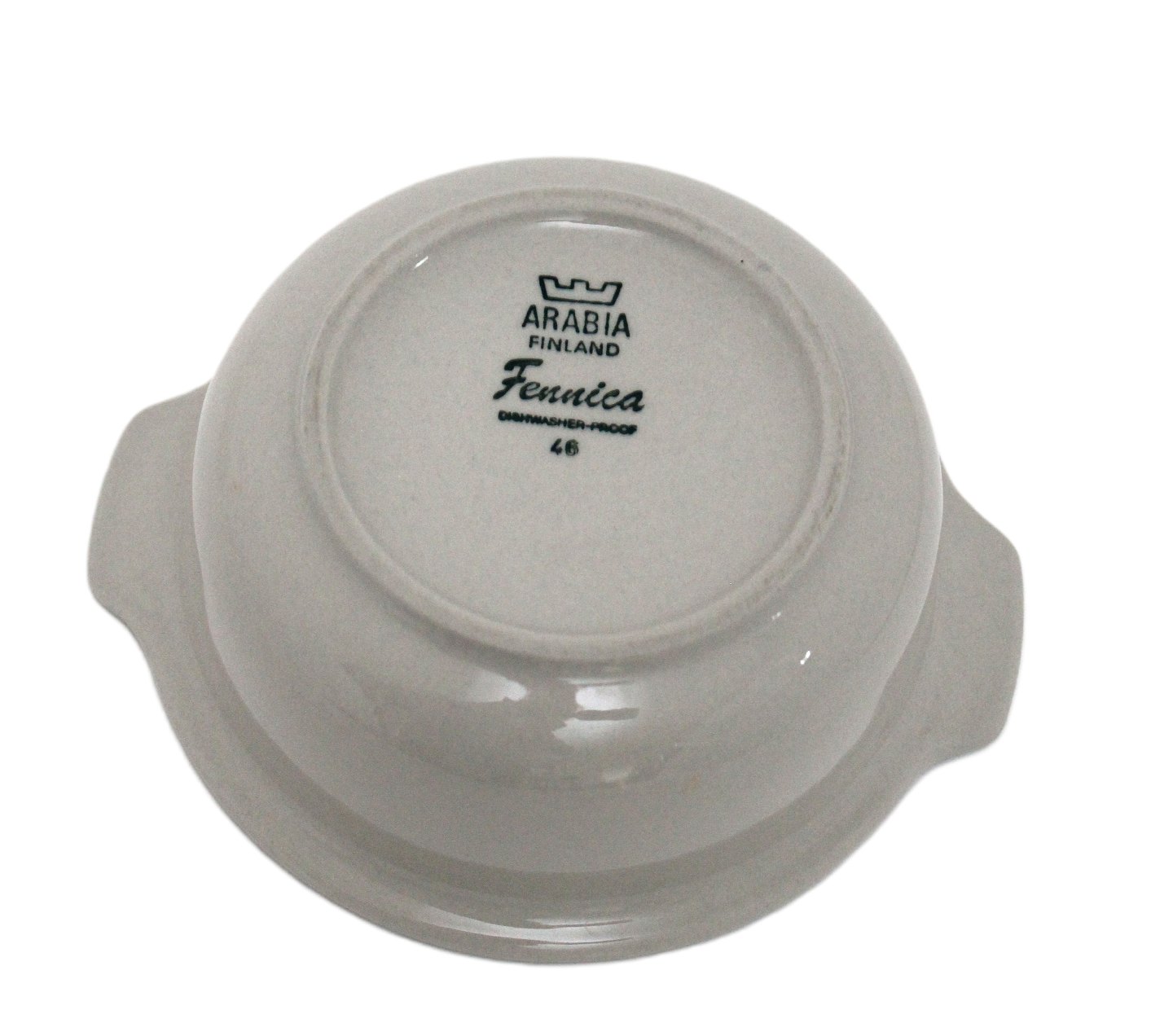 Arabia, Fennica. Skål med ører, boullionkop eller morgemadsskål. Højde 5,5 cm. Diameter 14,5 cm. Længde 16 cm. Fin stand. Pris: 125 kr. stk. Lager: 3