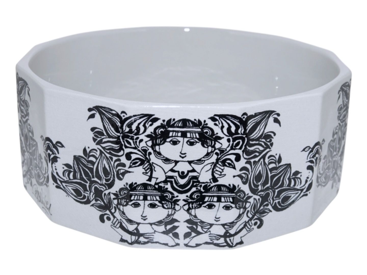Bjørn Wiinblad større og kantet skål med sort dekoration.