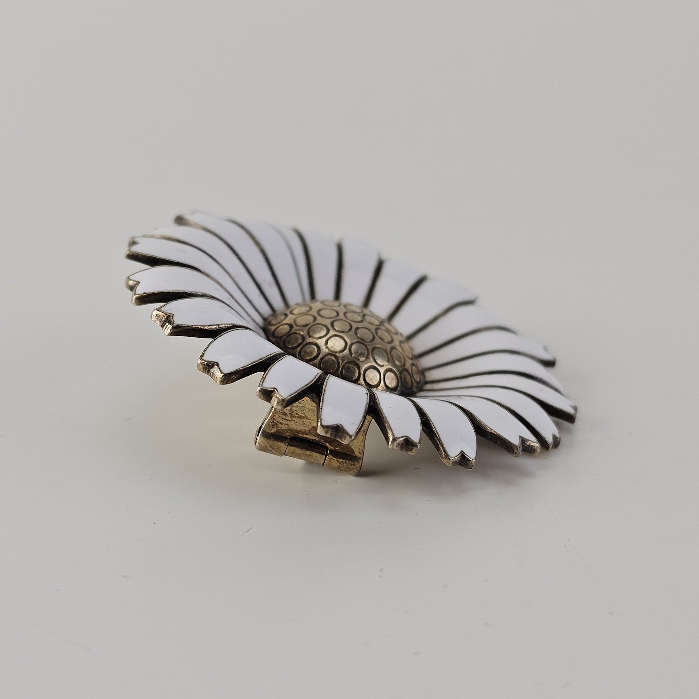Marguerit broche af forgyldt sterlingsølv