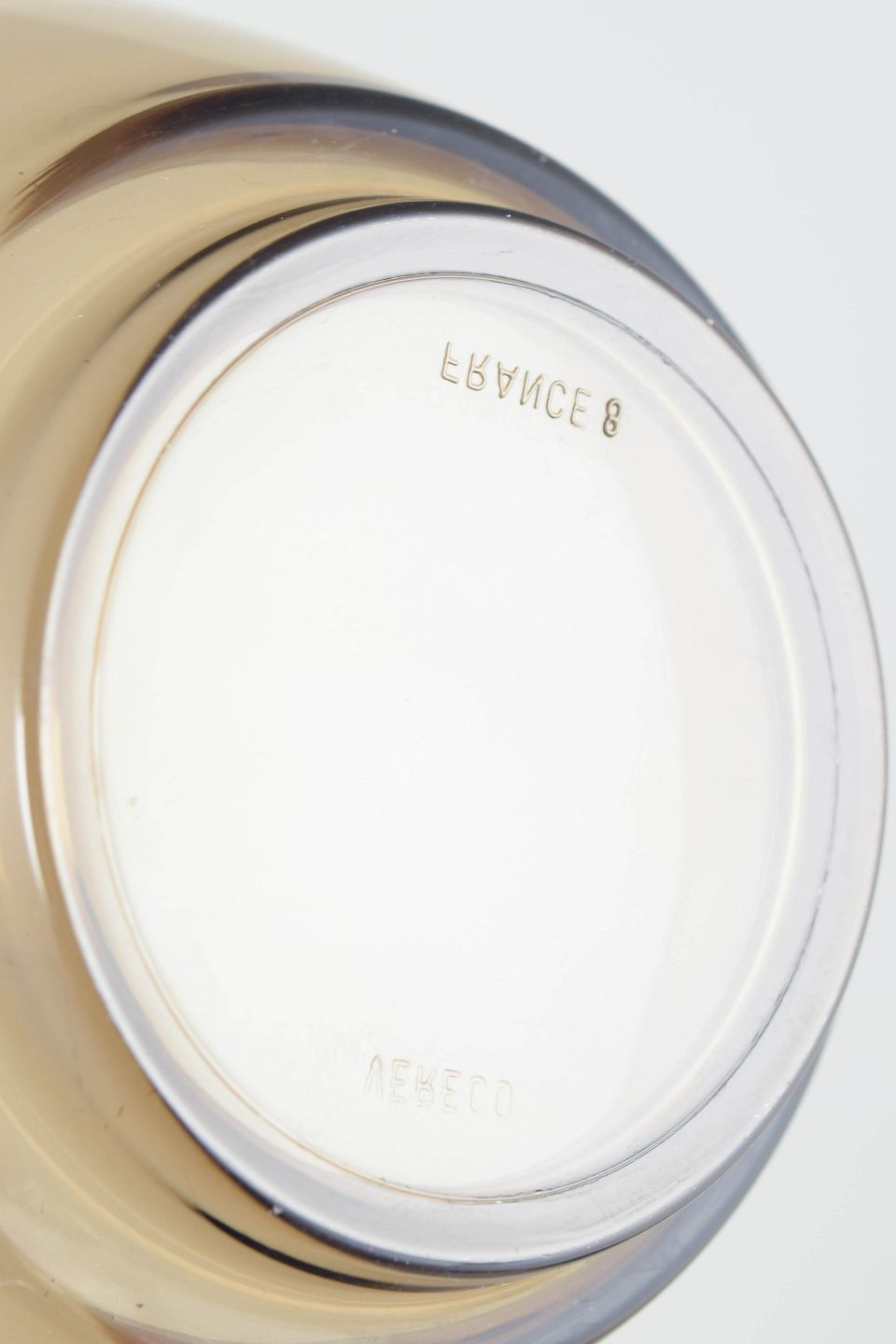 Vereco var en fransk glasproducent etableret i 1946, kendt for funktionelt og holdbart husholdningsglas i presset glas. Virksomheden opnåede stor udbredelse i Europa i midten af det 20. århundrede, hvor deres design kombinerede enkel formgivning med praktisk anvendelighed, ofte i karakteristiske farvetoner som røgfarvet glas.