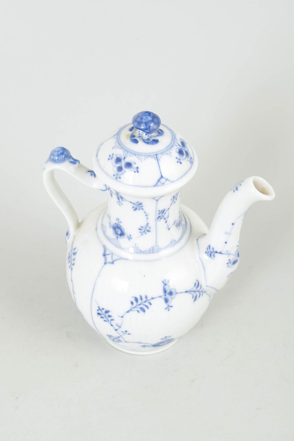 Håndmalet espressokande i porcelæn med klassisk musselmalet riflet dekoration, model 1/45, første sortering.