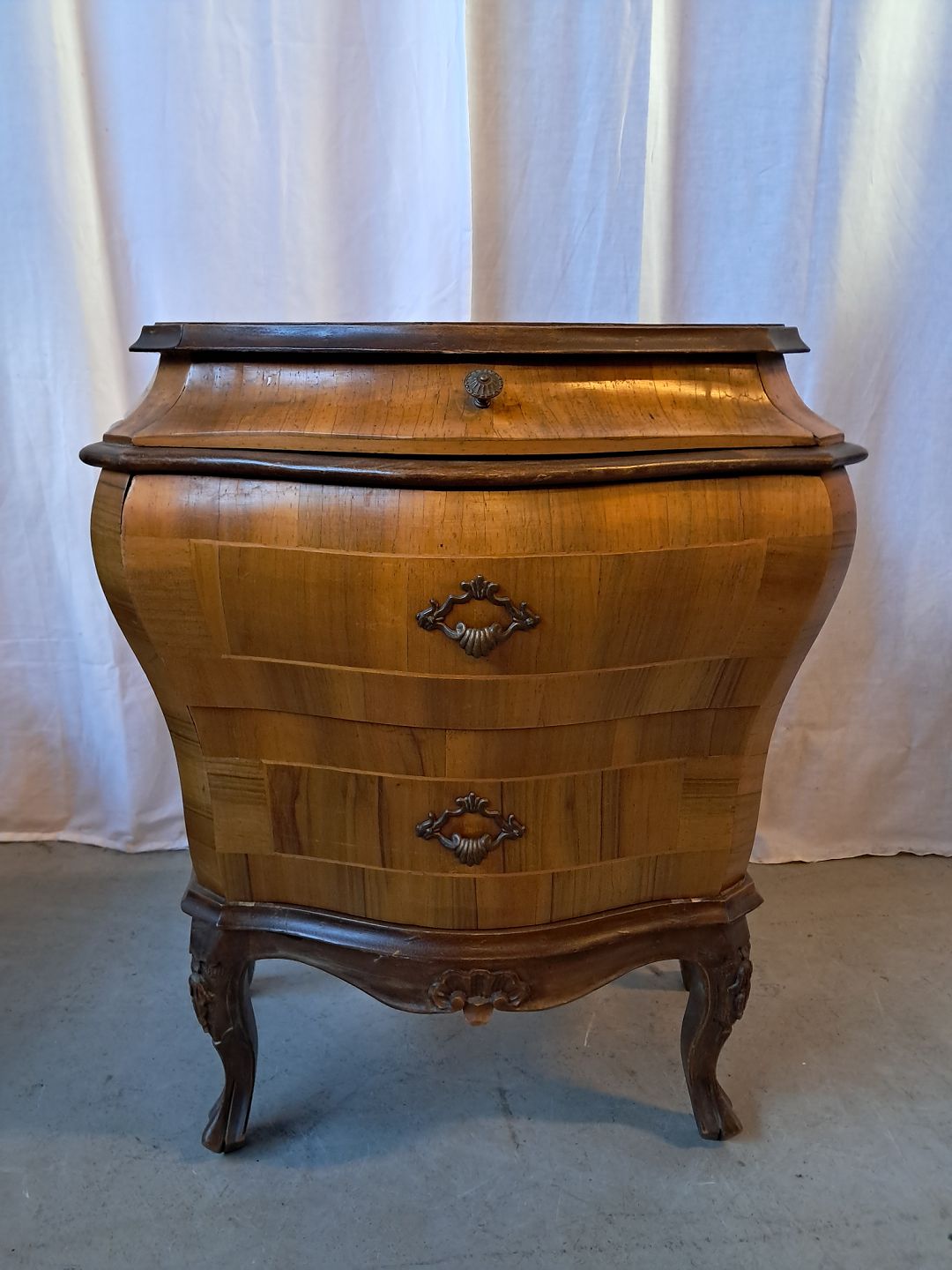 Rokoko kommode i fineret nødetræ, fra 1980erne.
