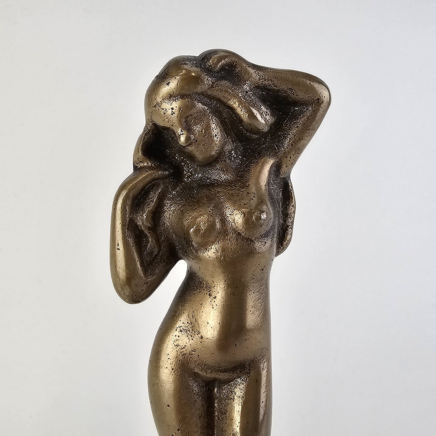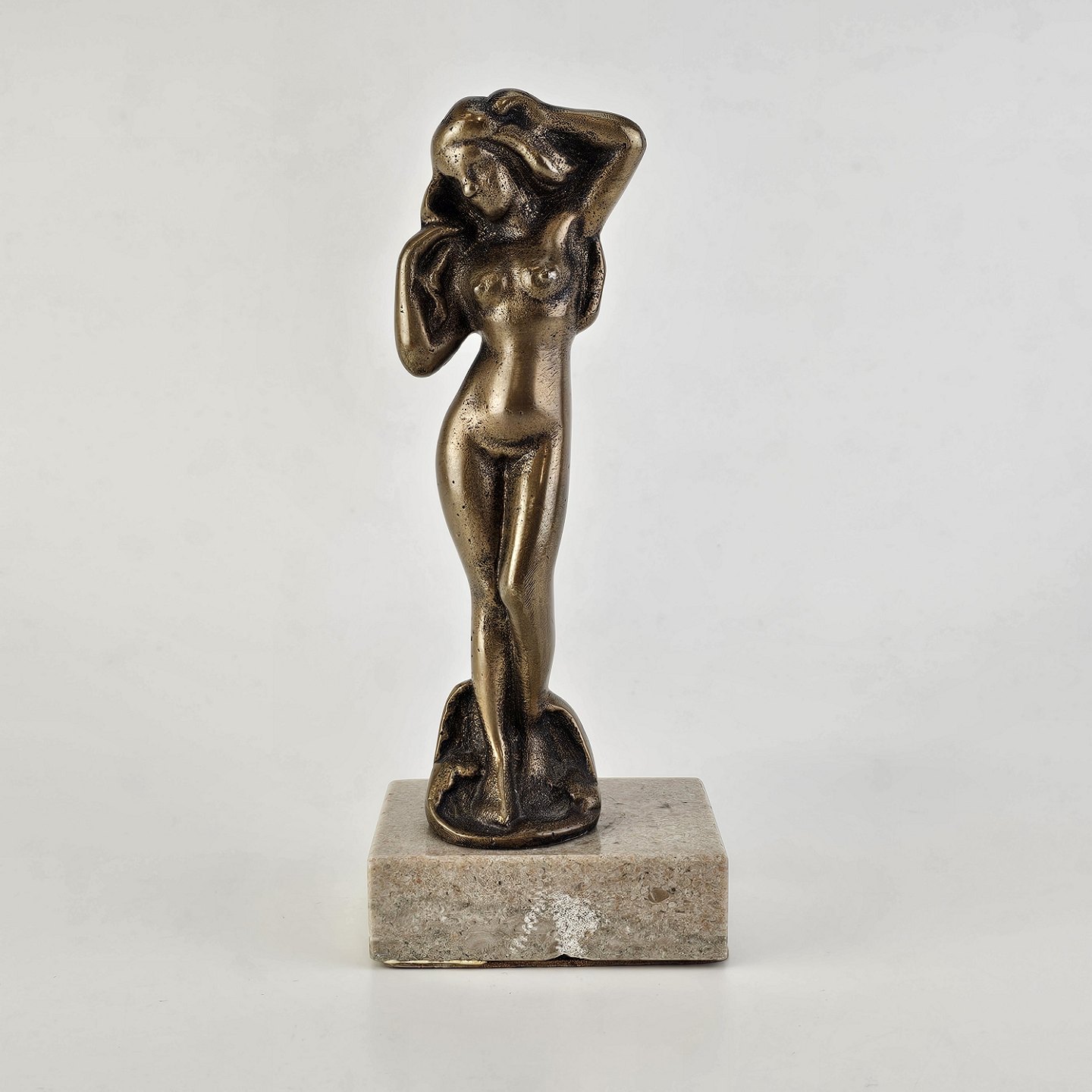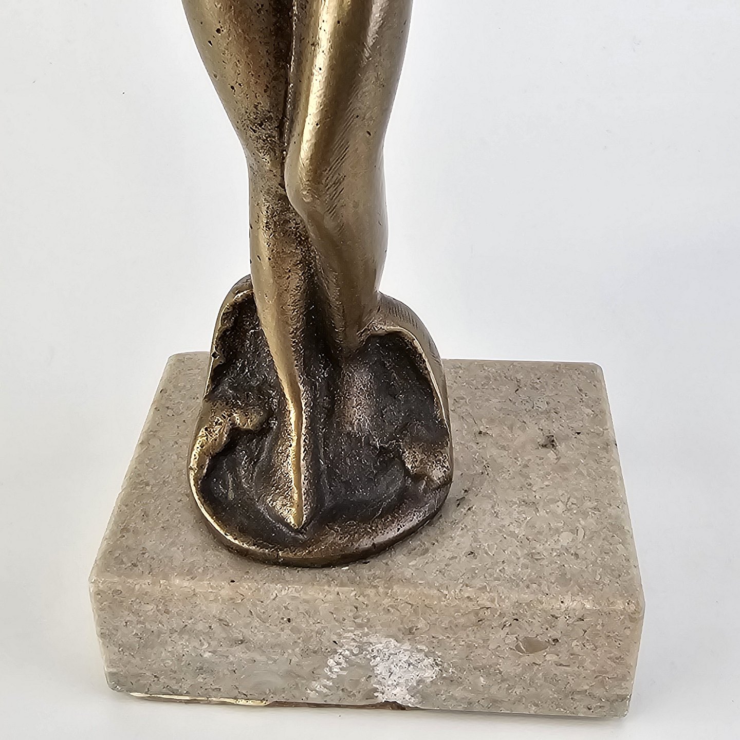 Venus figur i messing på en firkantet sten