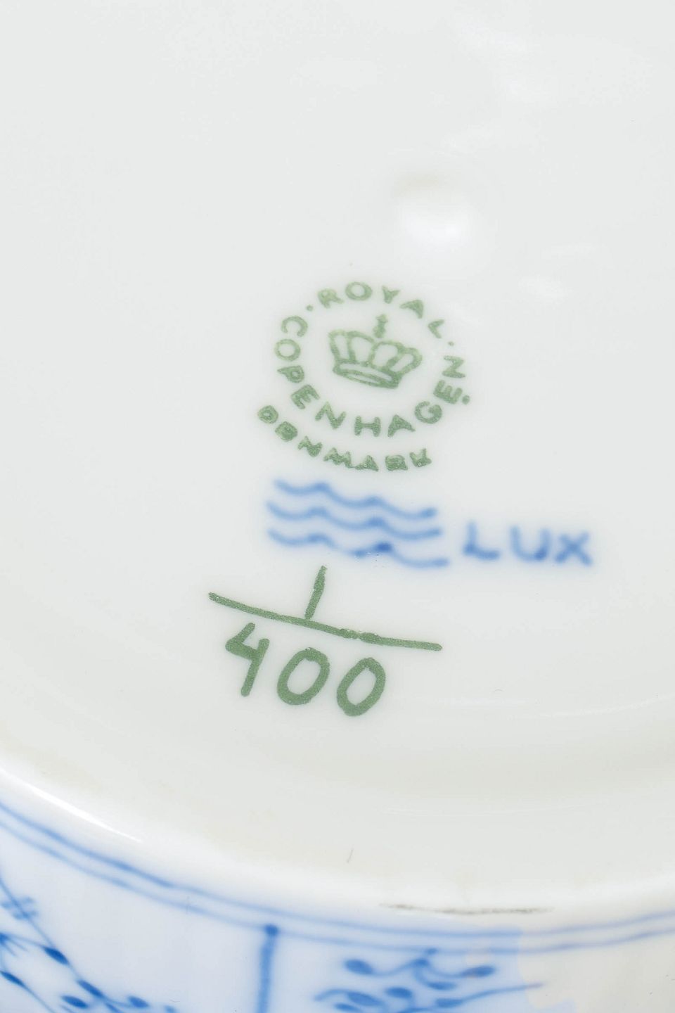 Royal Copenhagen blev grundlagt i 1775 og er internationalt anerkendt for sit håndmalede porcelæn. Musselmalet riflet er fabrikkens mest ikoniske stel, introduceret i slutningen af 1700-tallet og inspireret af kinesisk porcelæn. Hvert stykke er hånddekoreret og repræsenterer en central del af dansk porcelænshistorie.
