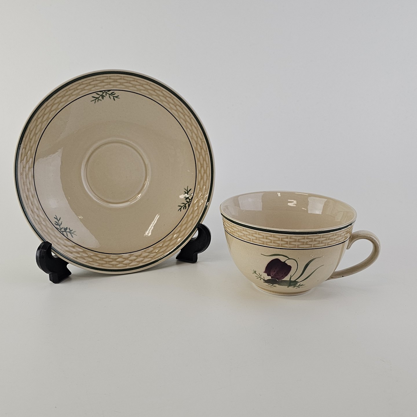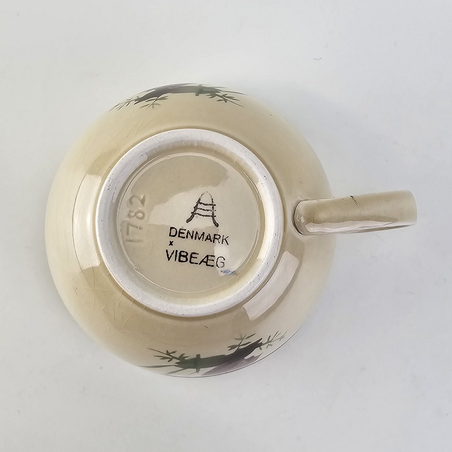 Tekop med underkop i fajance fra stellet Vibeæg