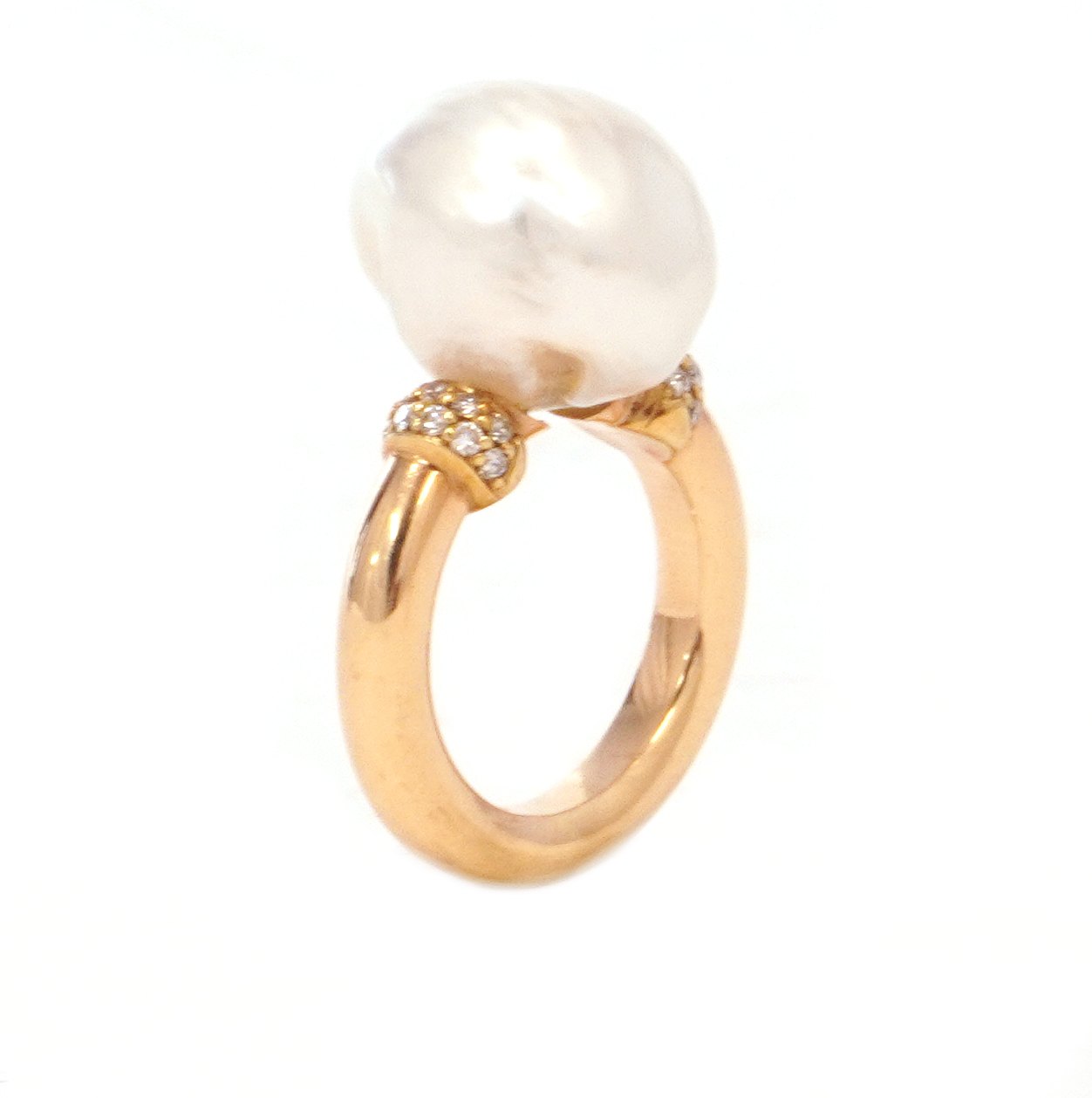 Benny Holmsted, København, 1989-2001, ring i 14kt guld med stor perle. Ringstr. 50