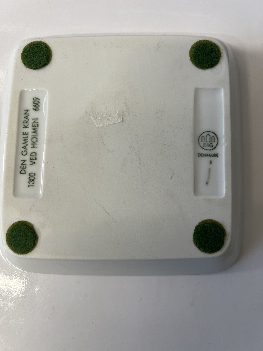 Bing & Grøndahl Firkantet asiet (oprindeligt askebæger) Den gamle kran ved holmen.