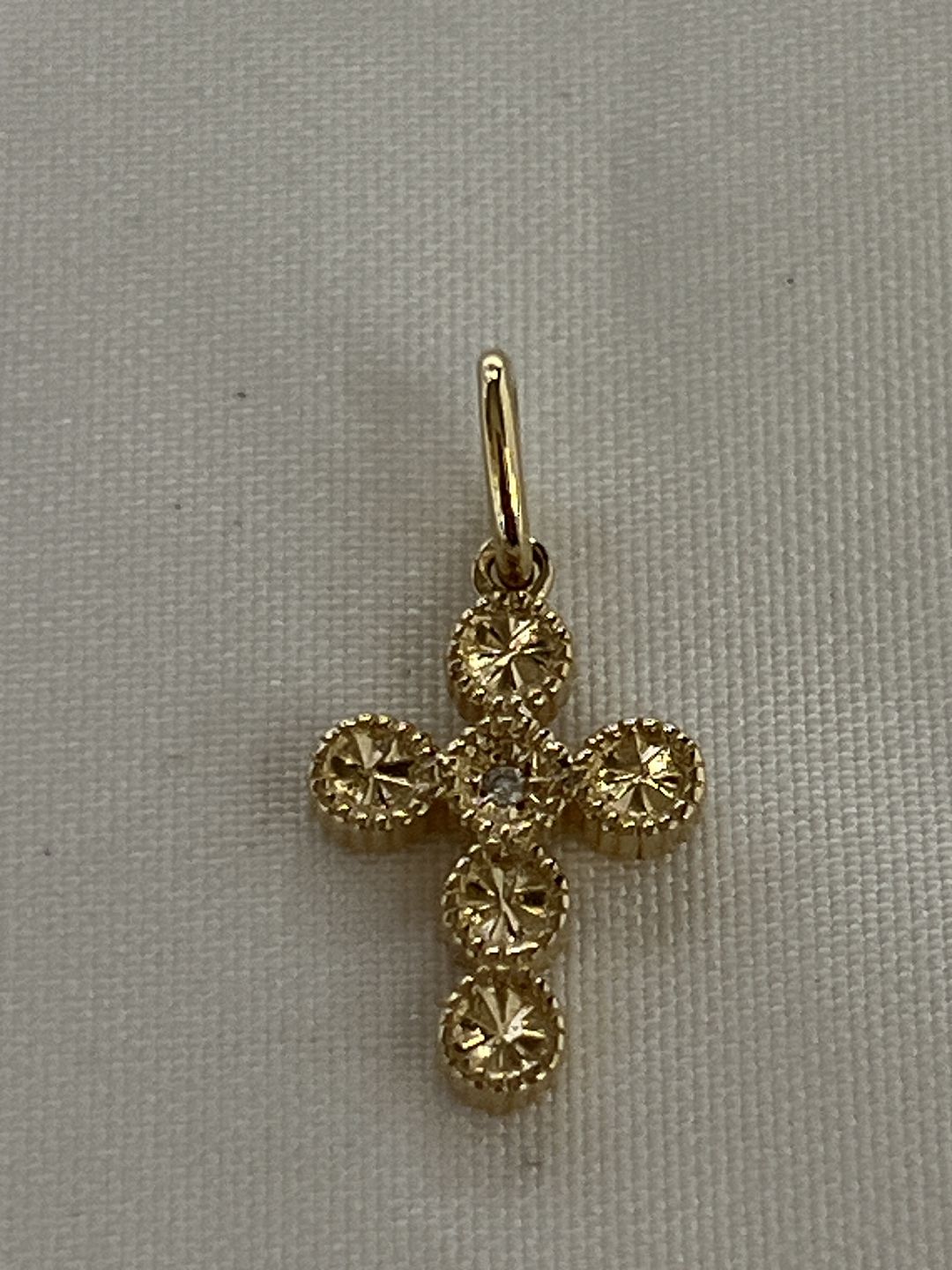 14 karat guld vedhæng Kors med en diamant.