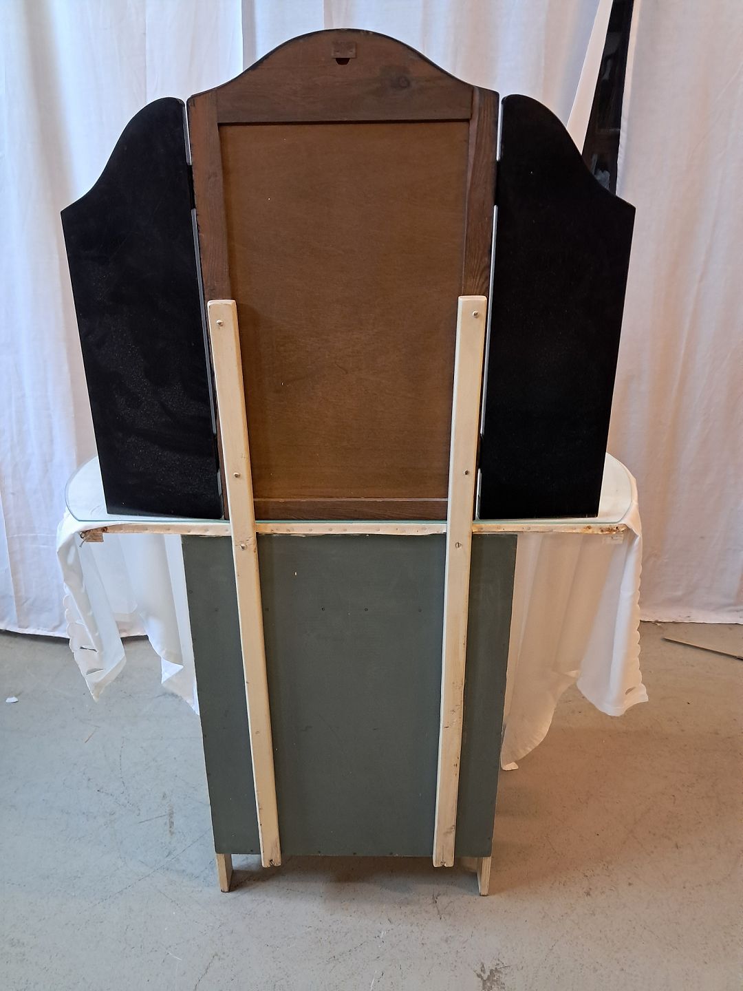 Marie Antorinette sminkebord med spejl og glasplade, fra 1950erne.
