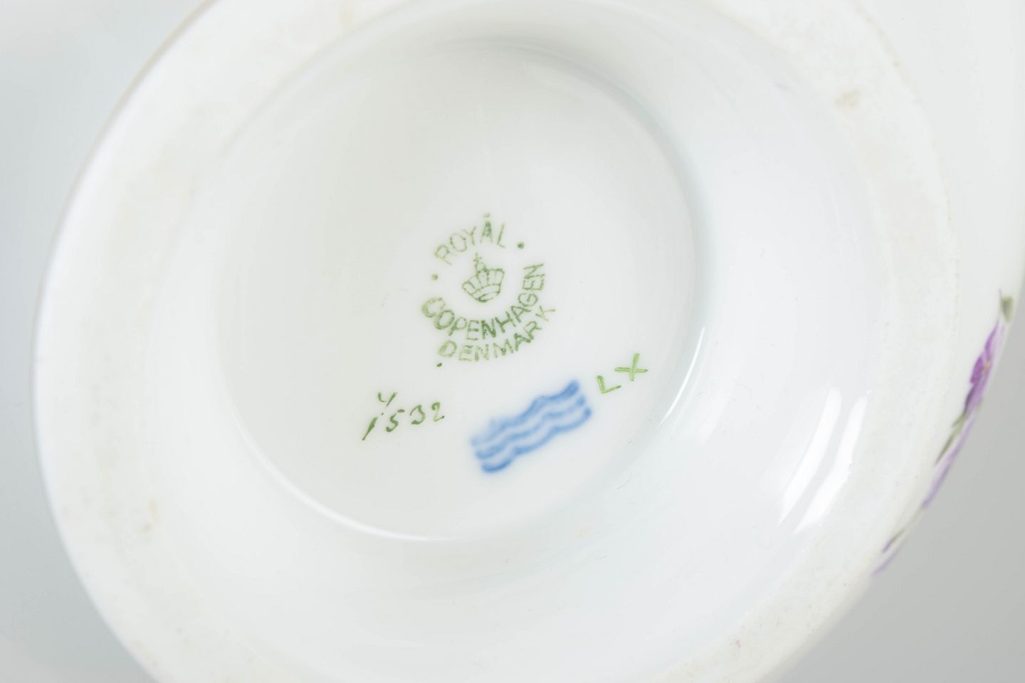 Opsats i porcelæn med polykrom blomsterdekoration i saksisk blomst og bølget kant med guldrand. Hævet på fod med klassisk profil. Model 4/1532, 1. sortering.